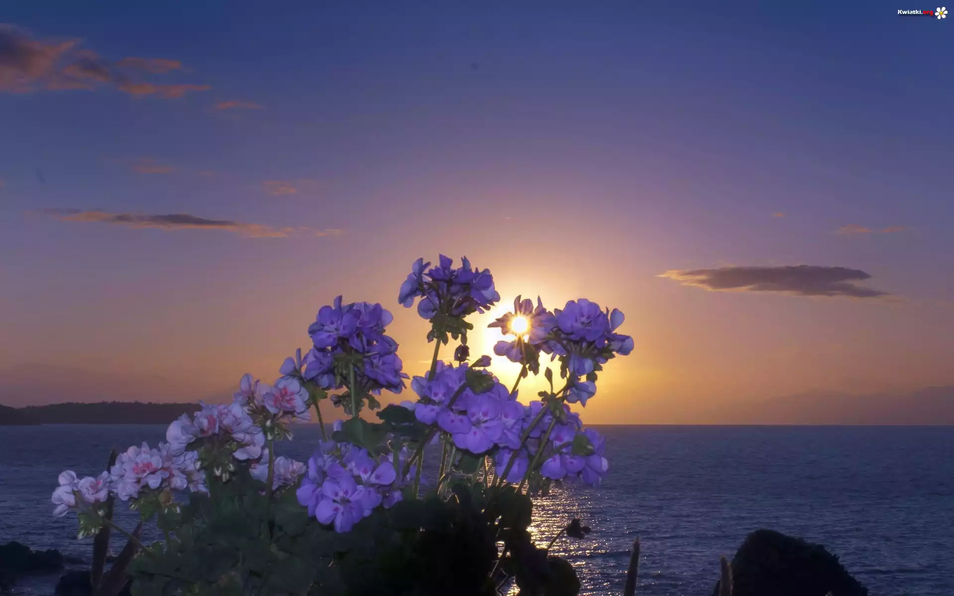 Kwiat Morze, Skały, Kwiaty, Promienie, Słońca