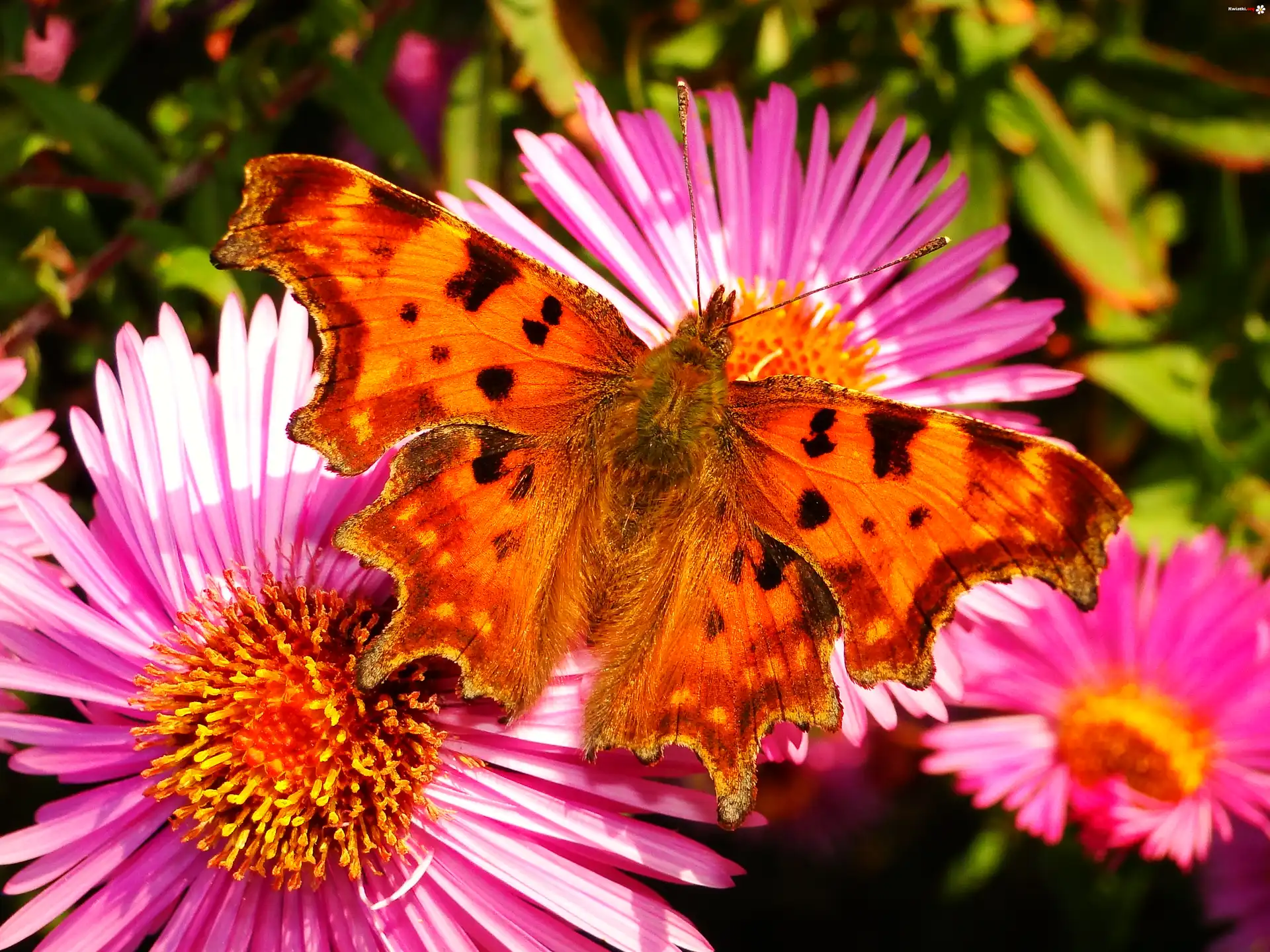 Motyl, Rusałka ceik, Kwiaty - Zdjęcia