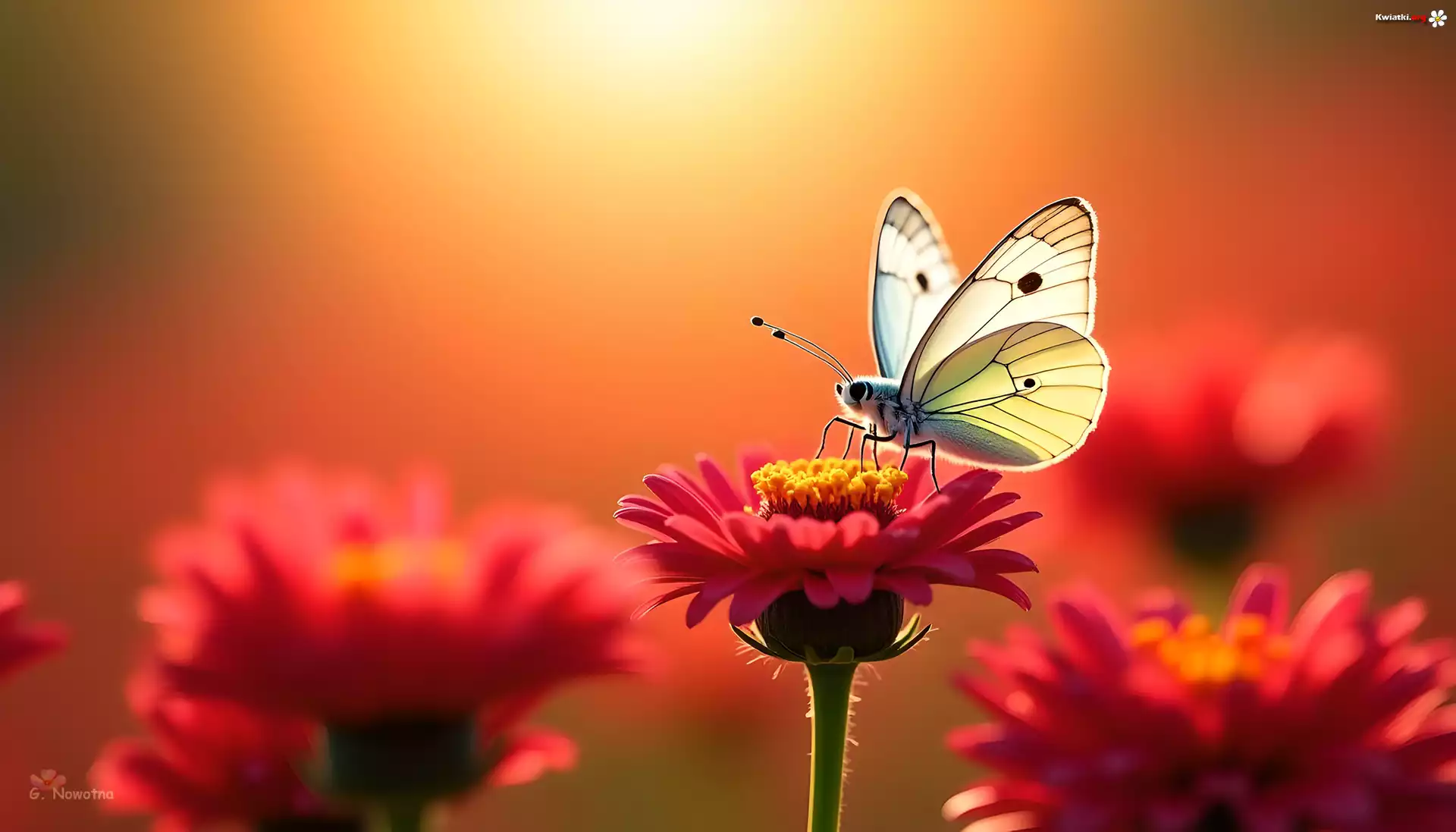 Biały, Motyl, Czerwony, Kwiat, Grafika - Zdjęcia