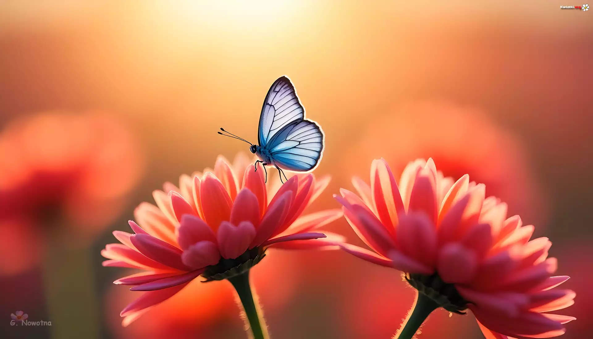 Niebieski, Motyl, Dwa, Czerwone, Kwiaty - Zdjęcia