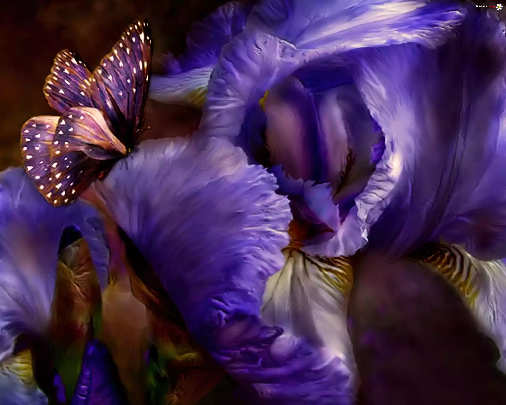 Kwiat Fioletowy, Motyl, Irysy
