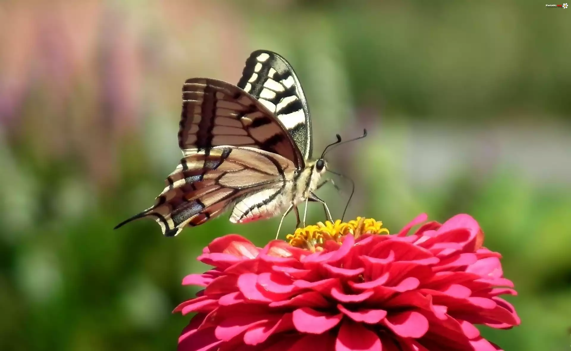 Motyl, Paż królowej, Kwiat, Cynia - Zdjęcia