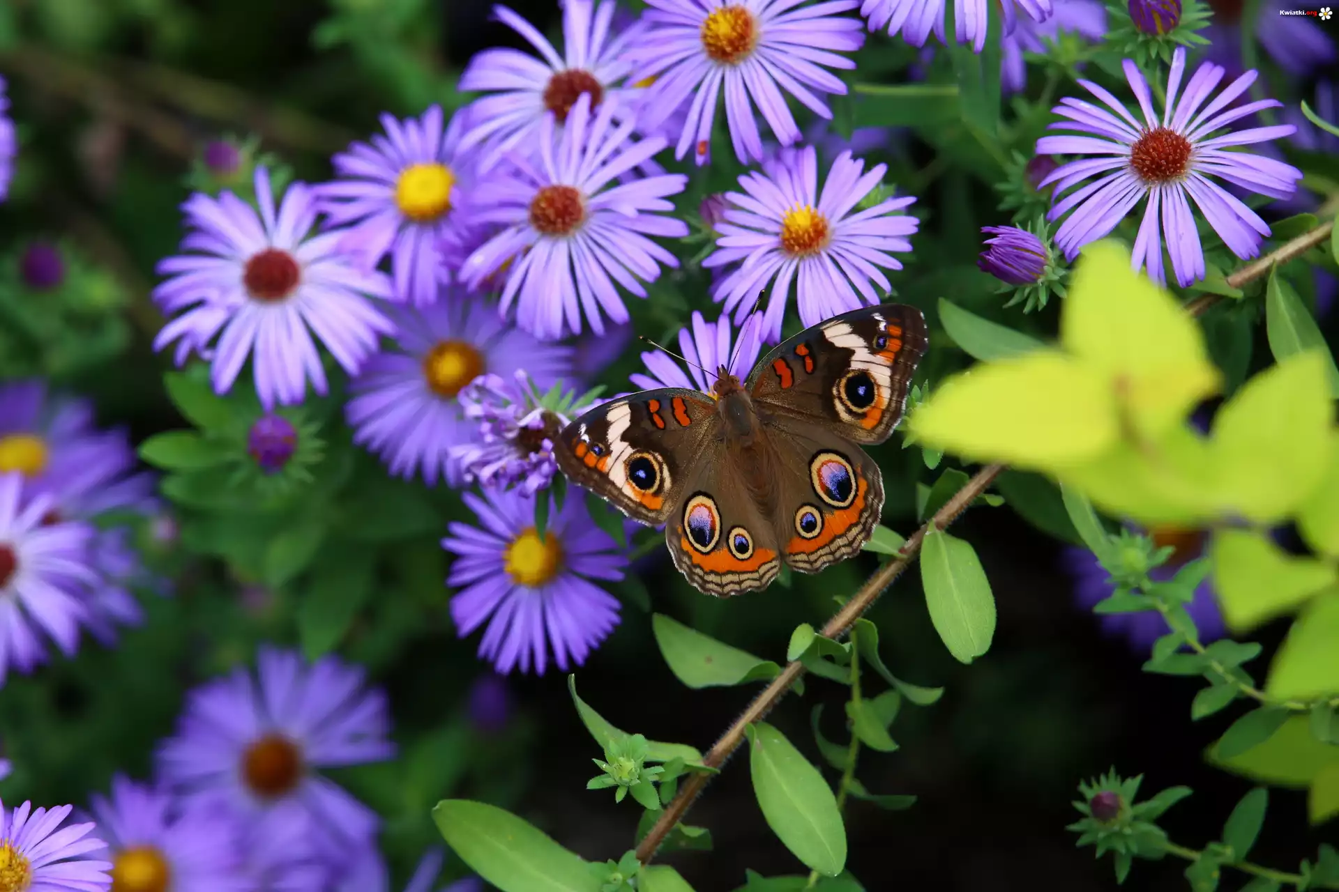 Motyl, Fioletowe, Kwiaty, Astry - Zdjęcia