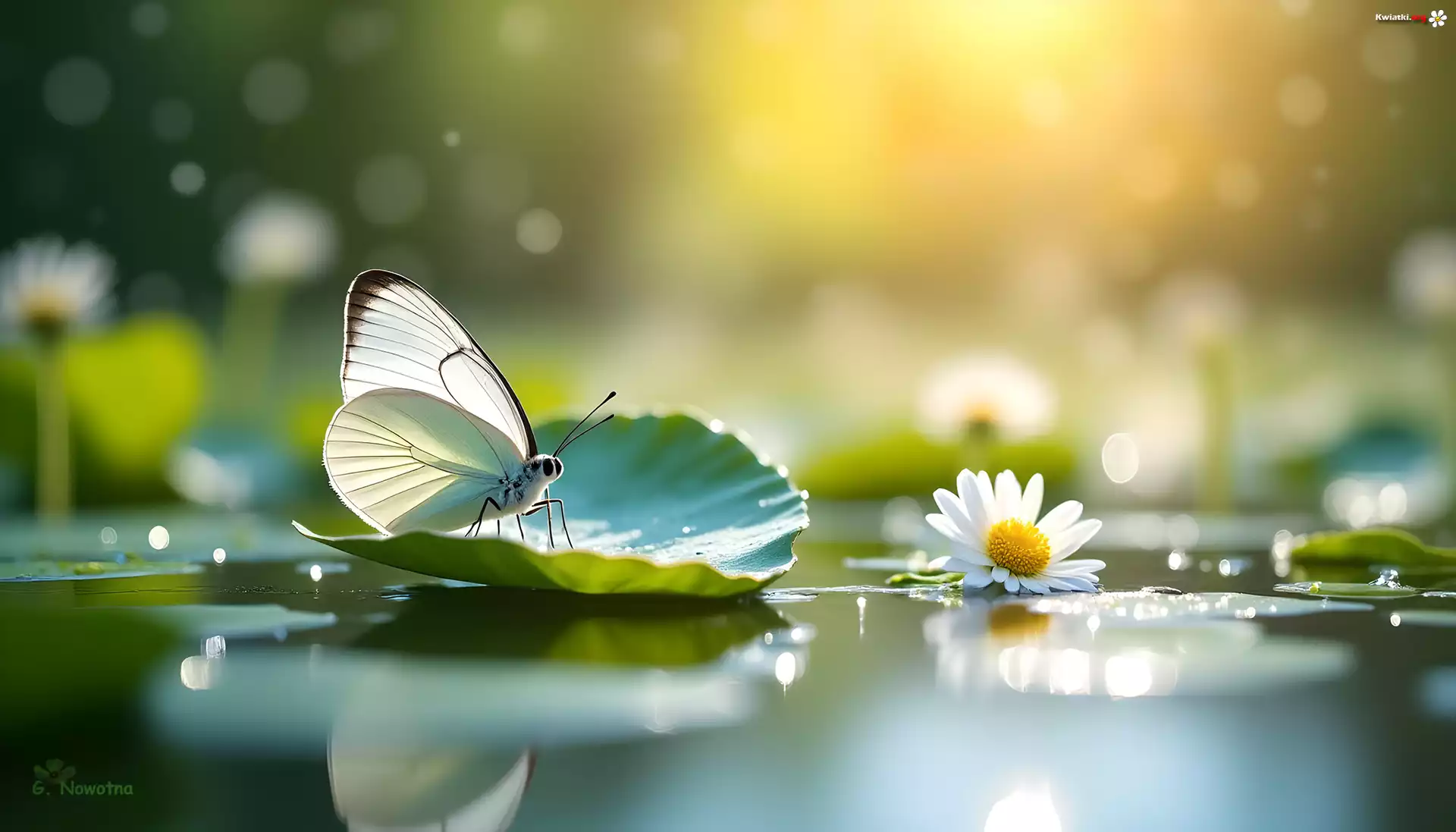 Biały, Motyl, Liść, Biała, Stokrotka - Zdjęcia