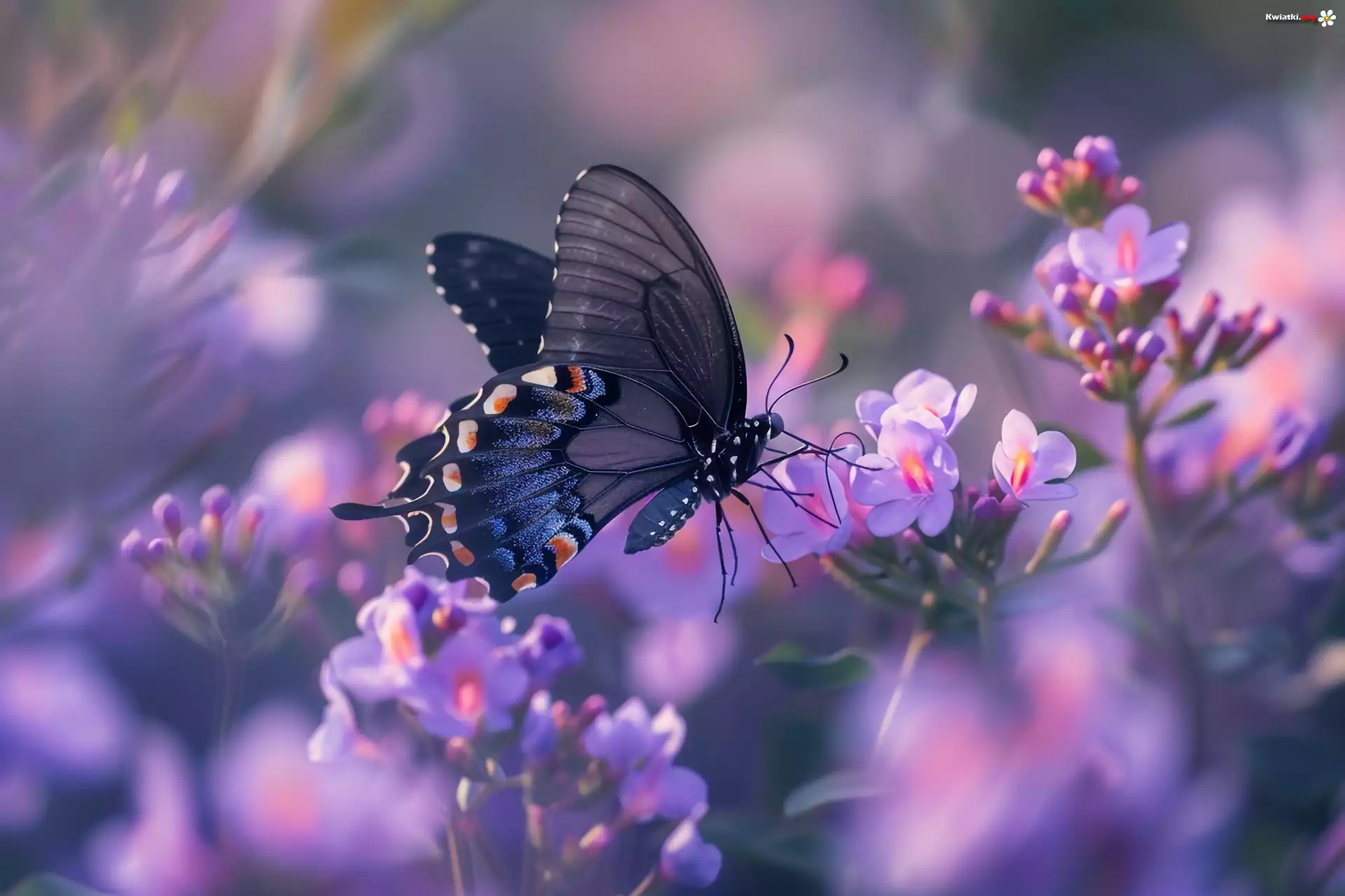 Czerny, Motyl, Purpurowe, Kwiaty, Grafika - Zdjęcia