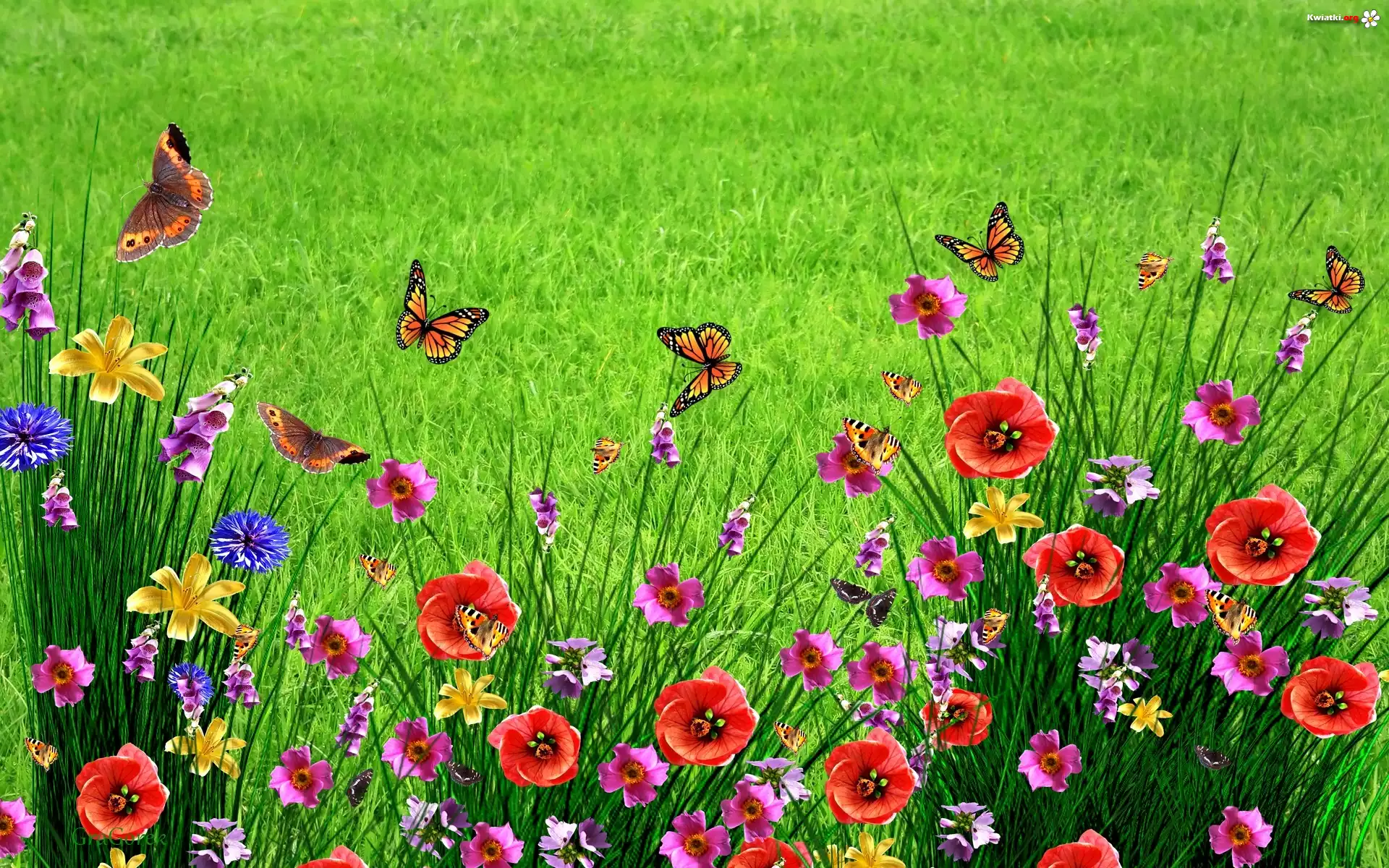 Łąka, Kwiaty, Maki, Motyle, Wiosna - Zdjęcia