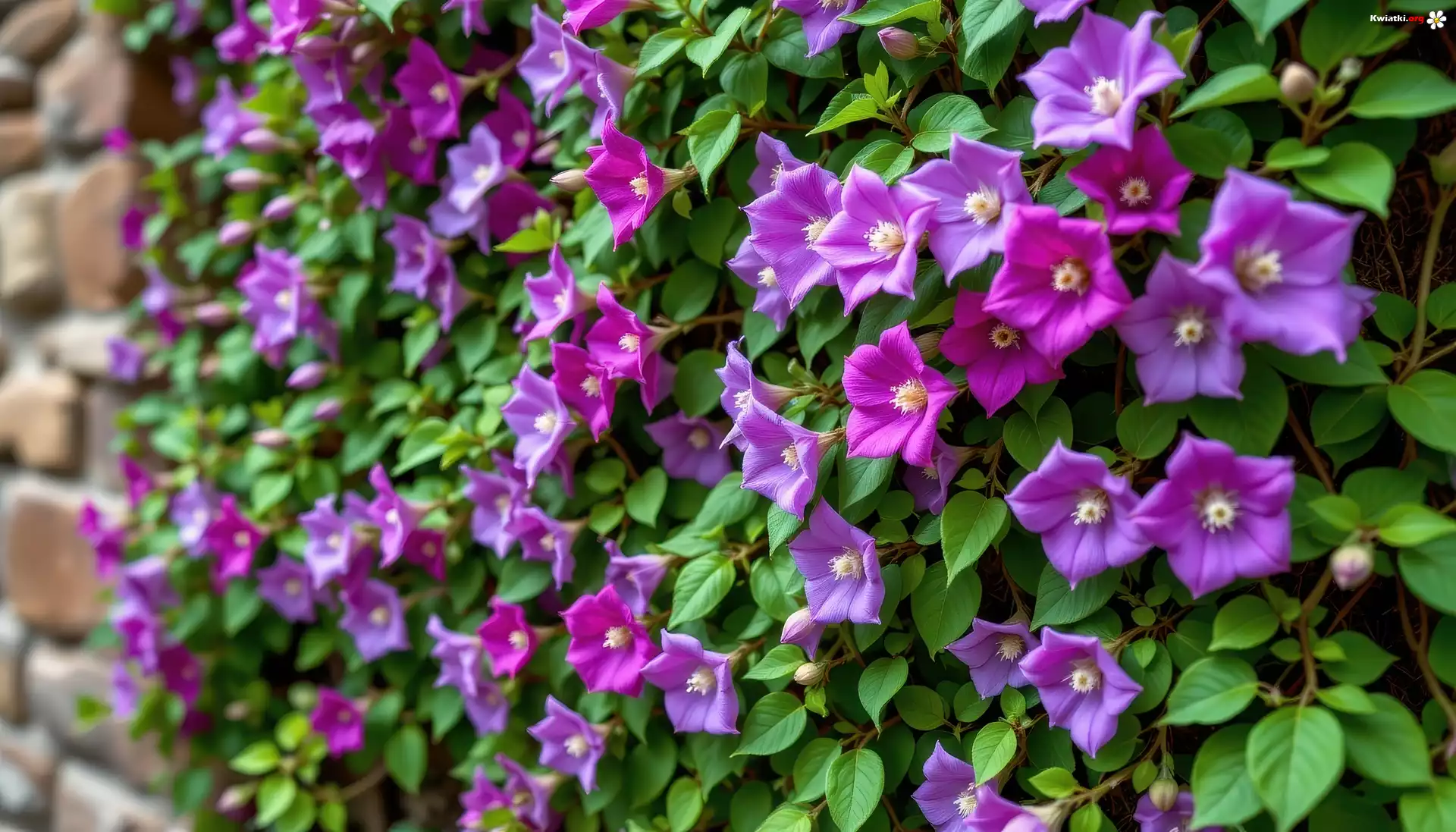 Kwiat Fioletowe, Kwiaty, Liście, Mur, Grafika AI