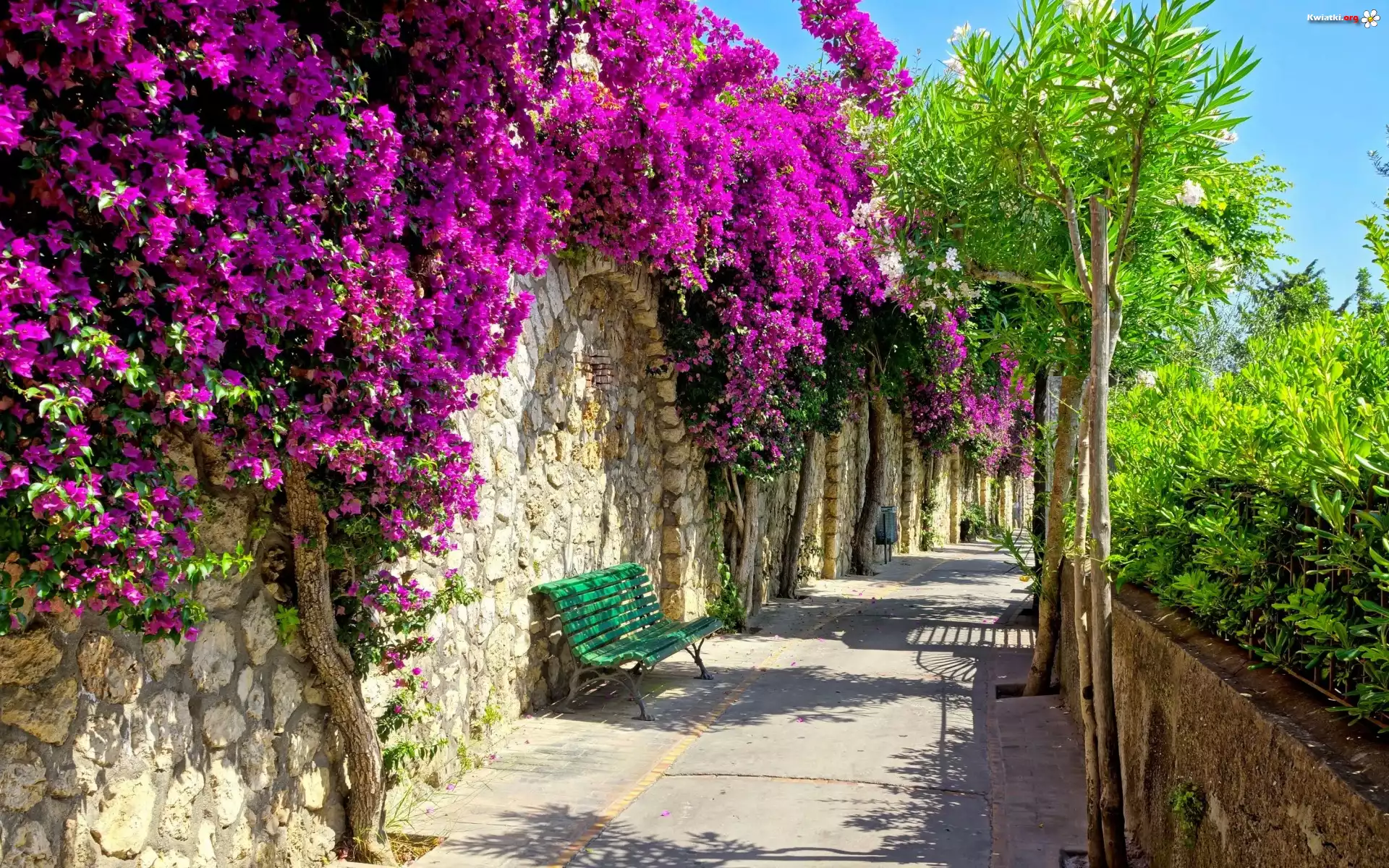 Kwiat Drzewa, Mur, Uliczka, Ławka, Kwiaty