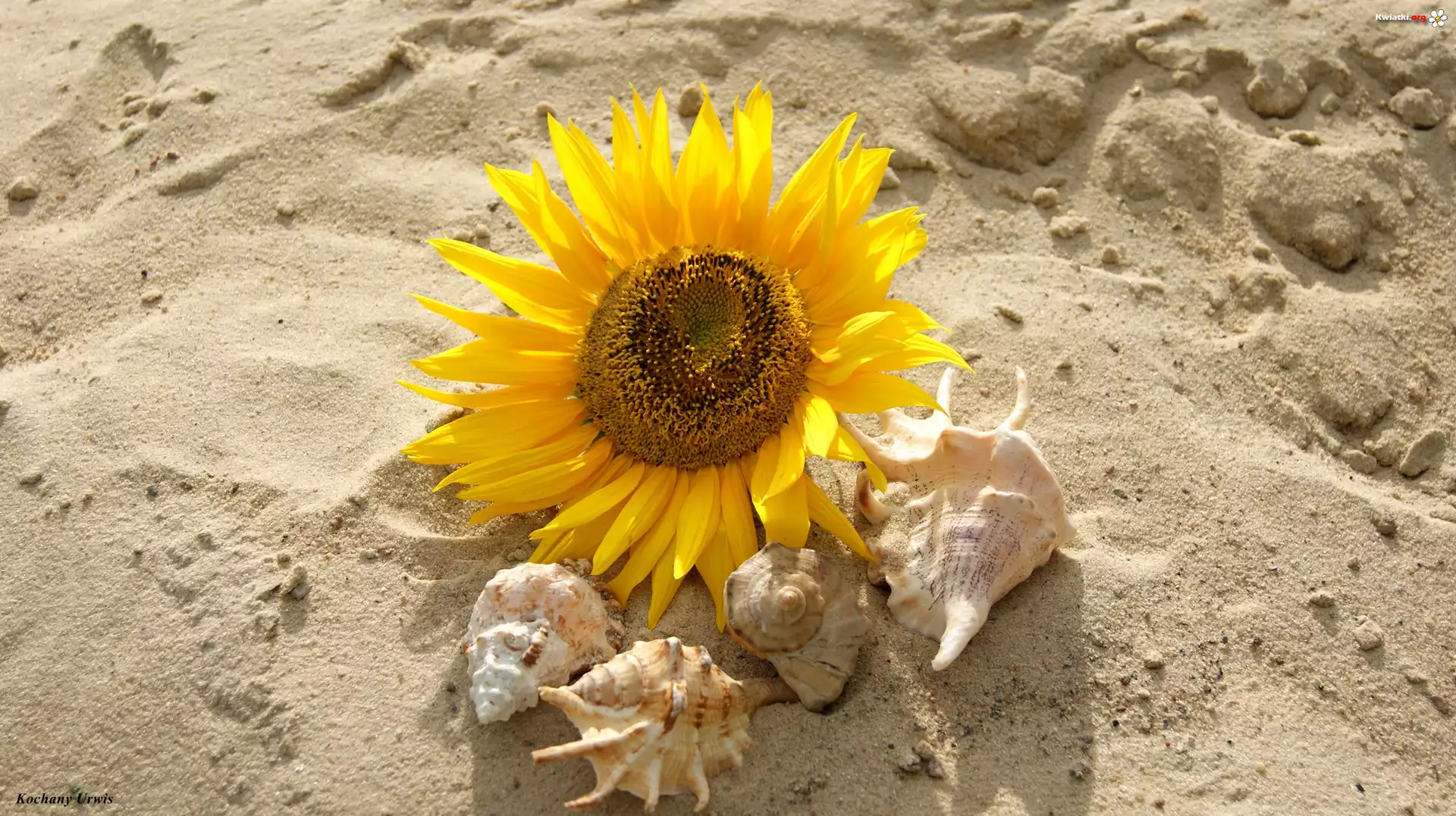 Kwiat Słonecznik, Muszelki, Piasek