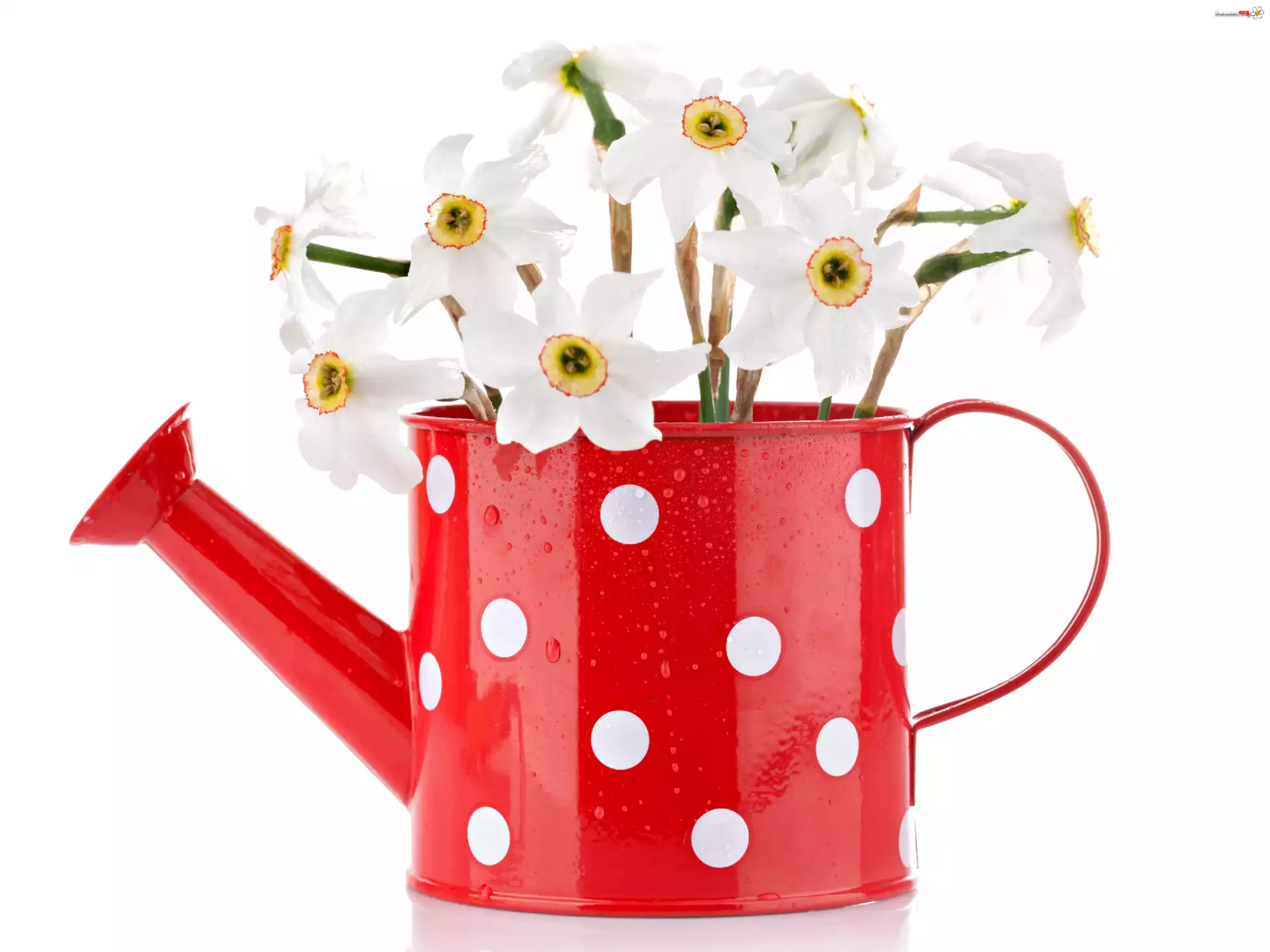 Narcyze, Czerwona, Konewka, Białe, Groszki - Zdjęcia