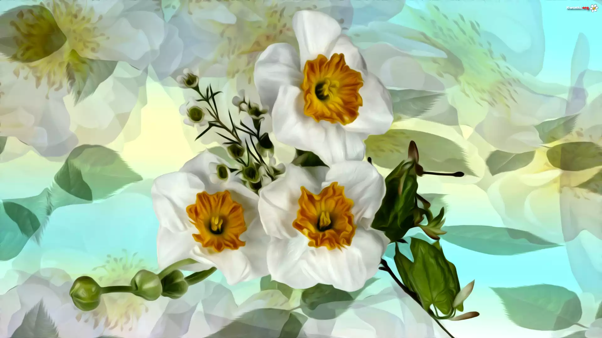 Kwiaty, Narcyzy, Grafika - Zdjęcia