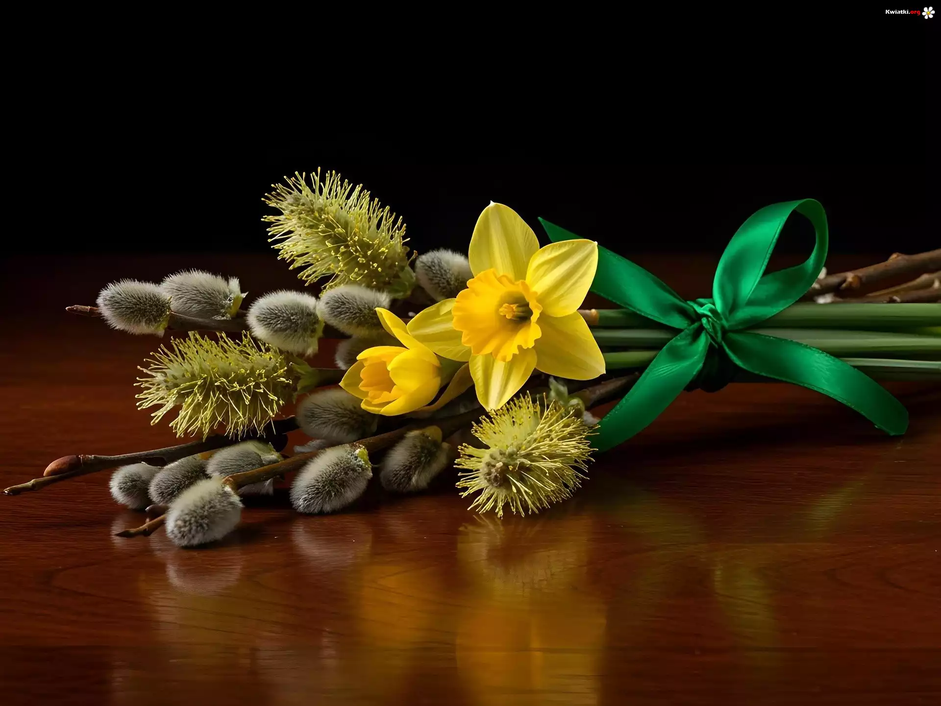 Kwiat Bazie, Narcyzy żonkile, Kokarda, Stół