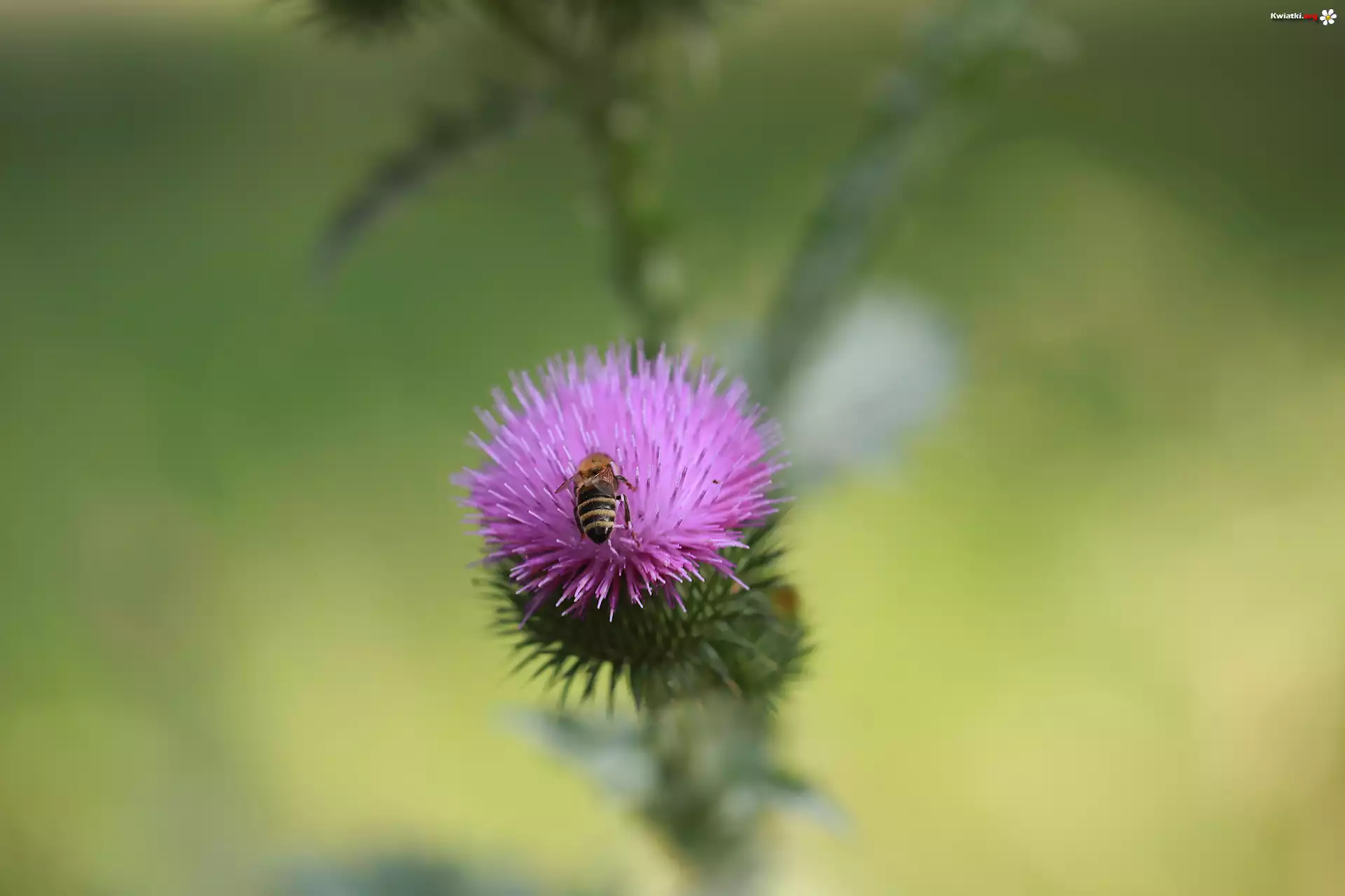 Kwiat Oset nastroszony, Fioletowy, Kwiat, Owad