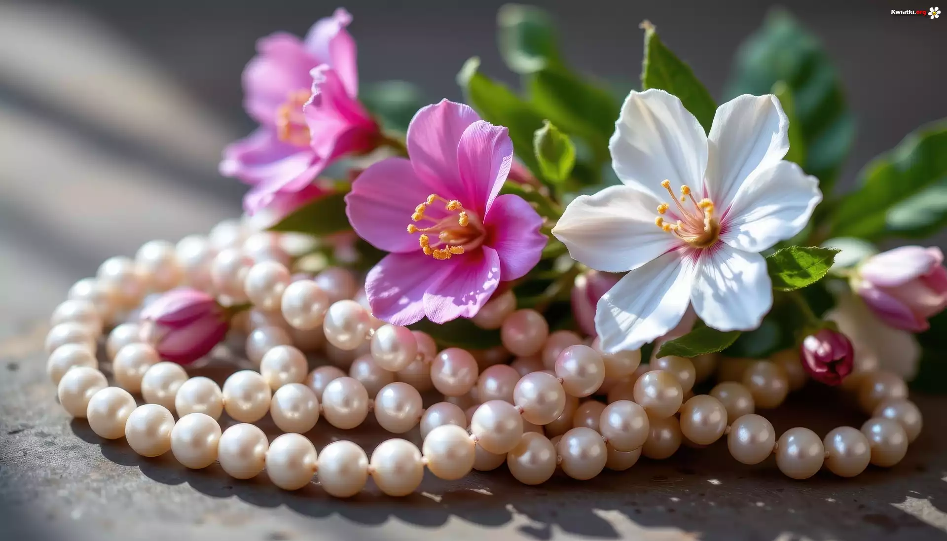 Kwiaty, Różowe, Perły, Naszyjnik - Zdjęcia