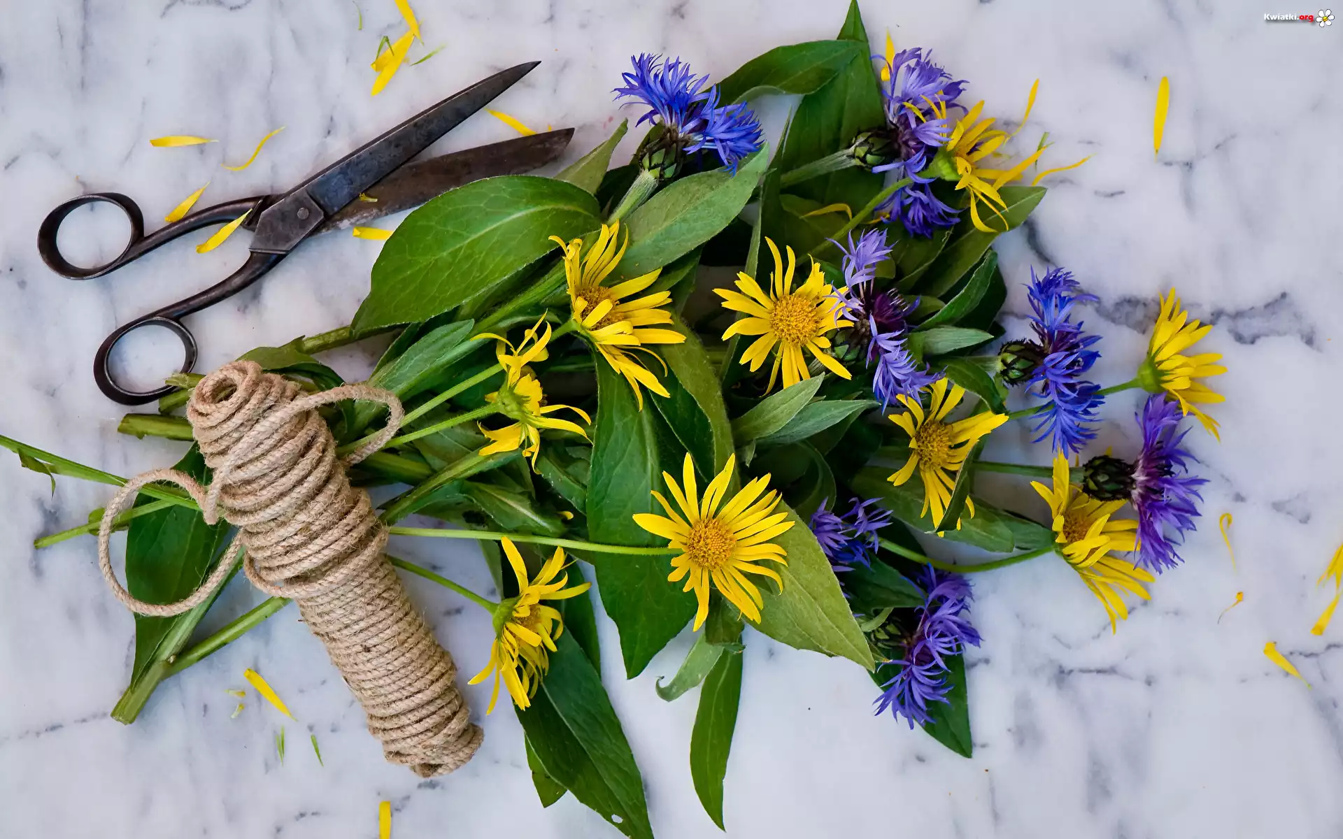 Kwiat Żółte, Kwiaty, Chabry, Nici, Nożyczki