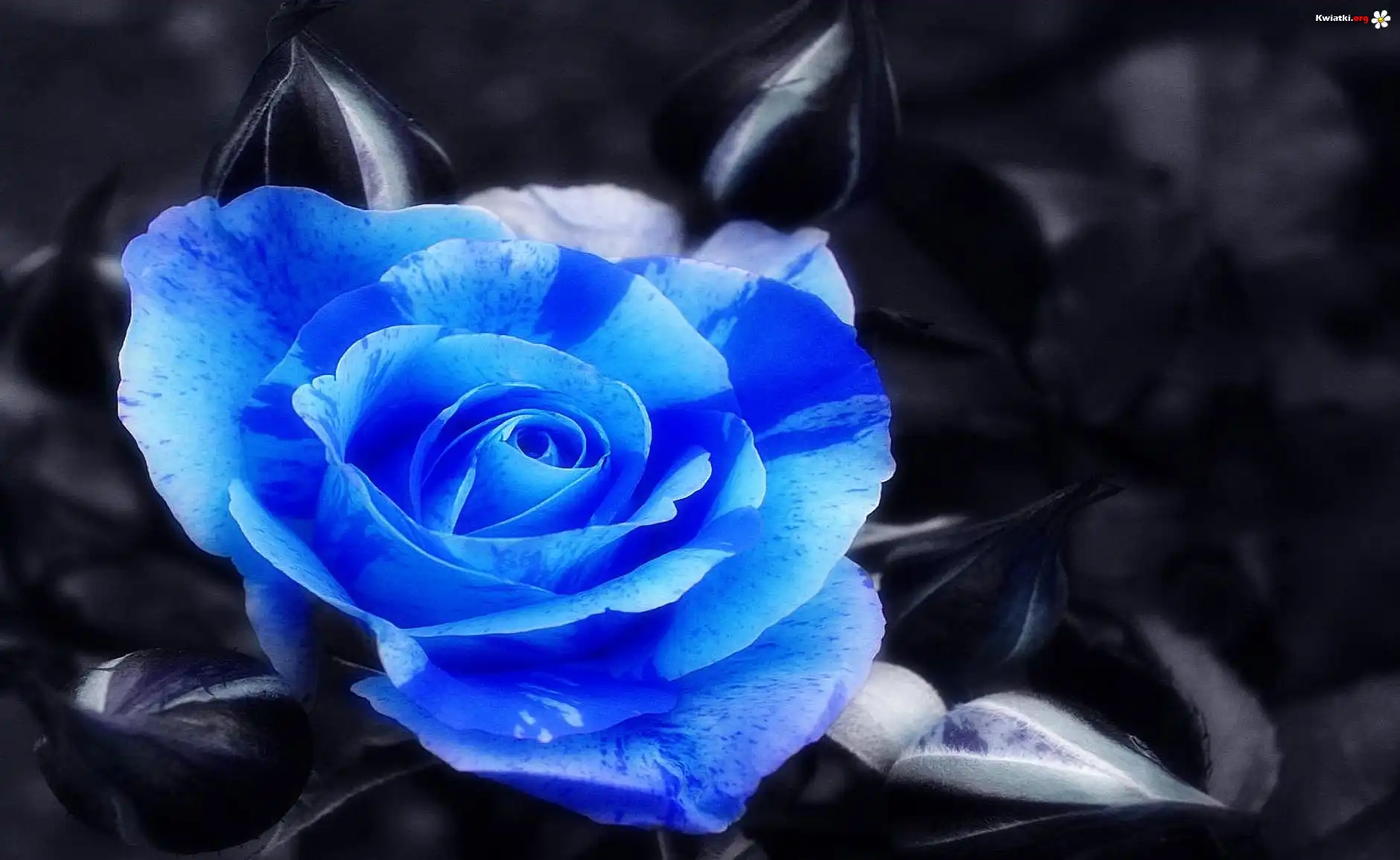 Niebieska, Róża, Czarne, Tło - Zdjęcia