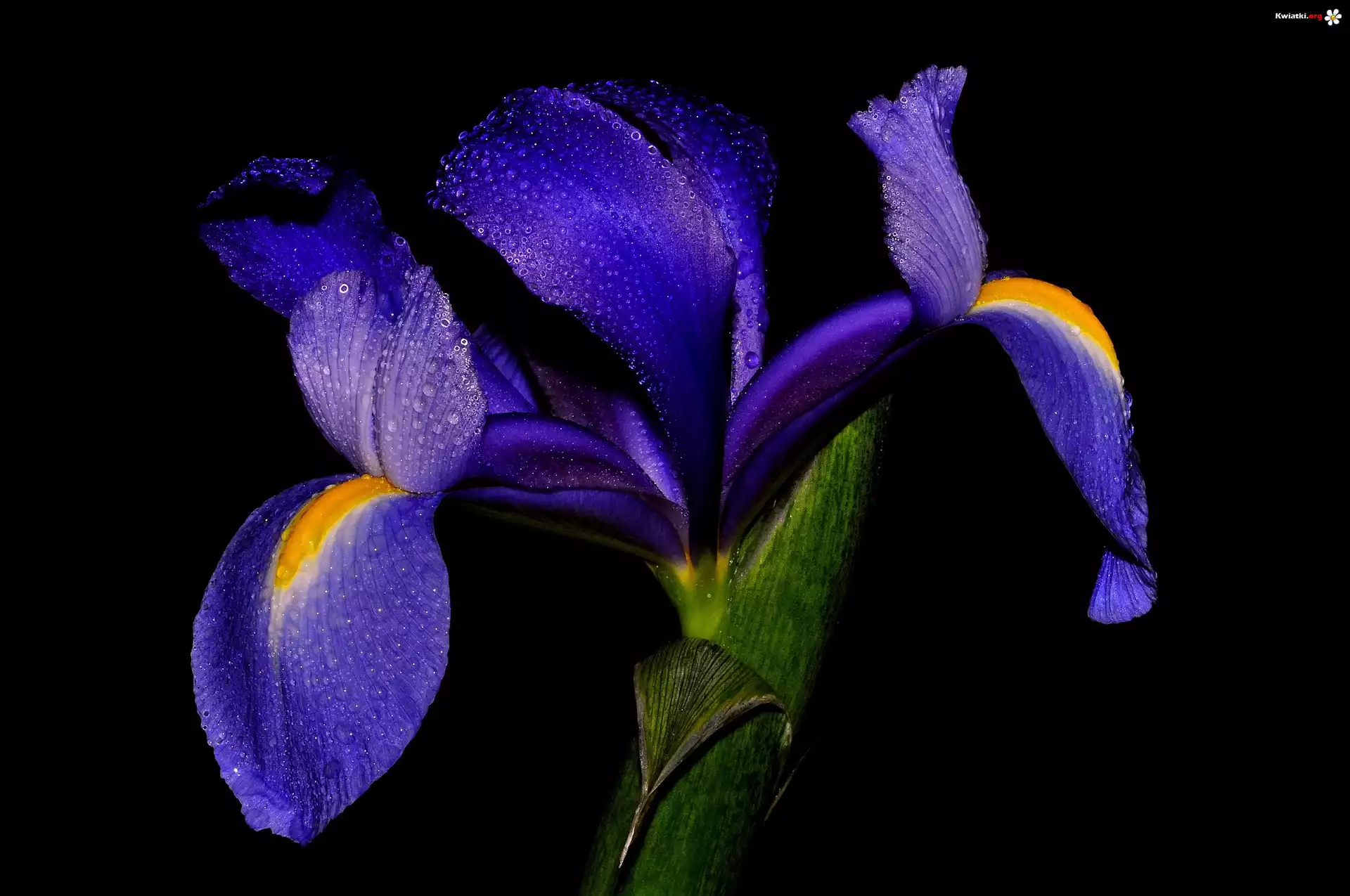 Niebieski, Irys, Krople, Rosy - Zdjęcia