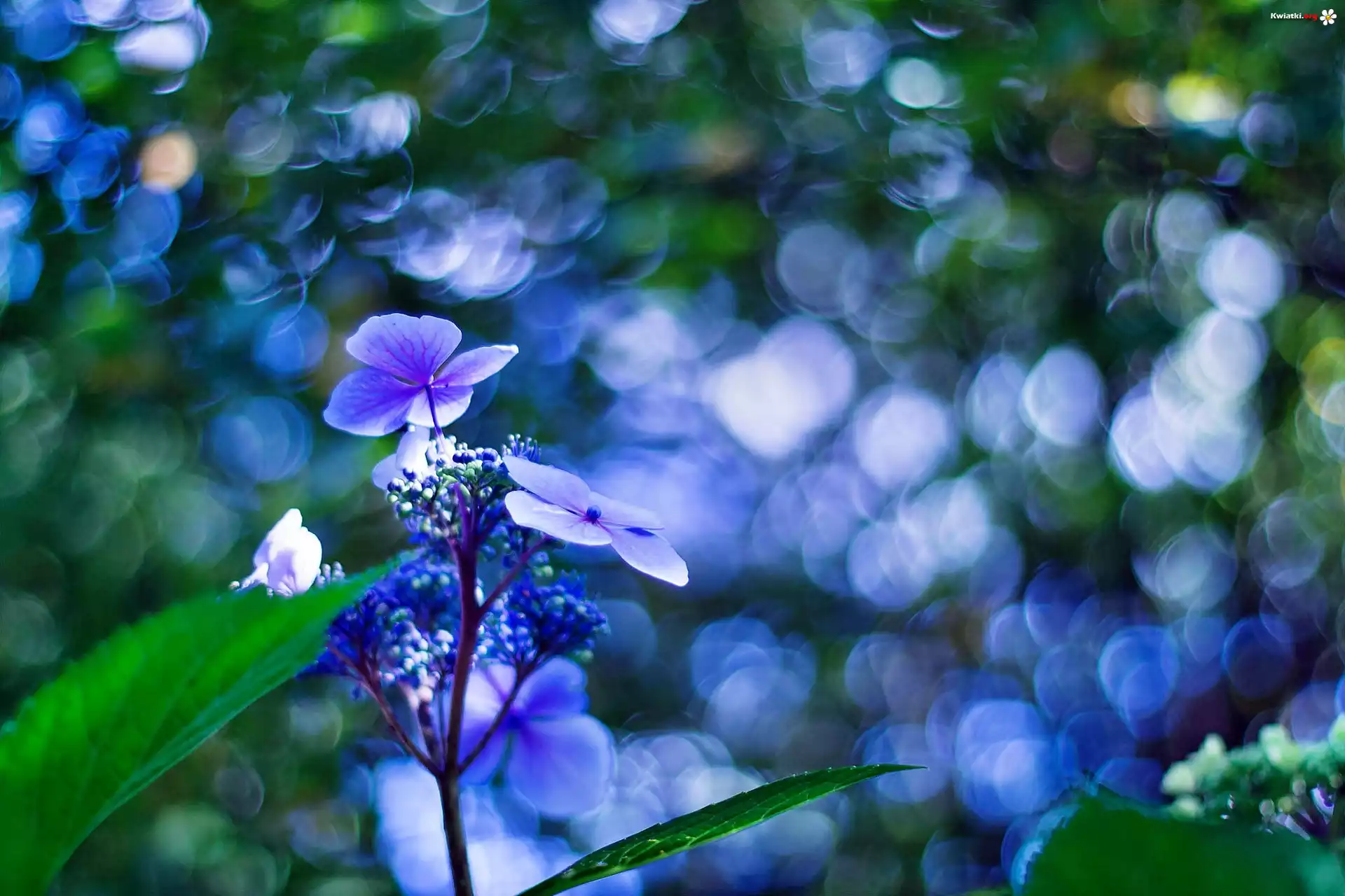 Niebieski, Kwiatek, Hortensja, Bokeh - Zdjęcia