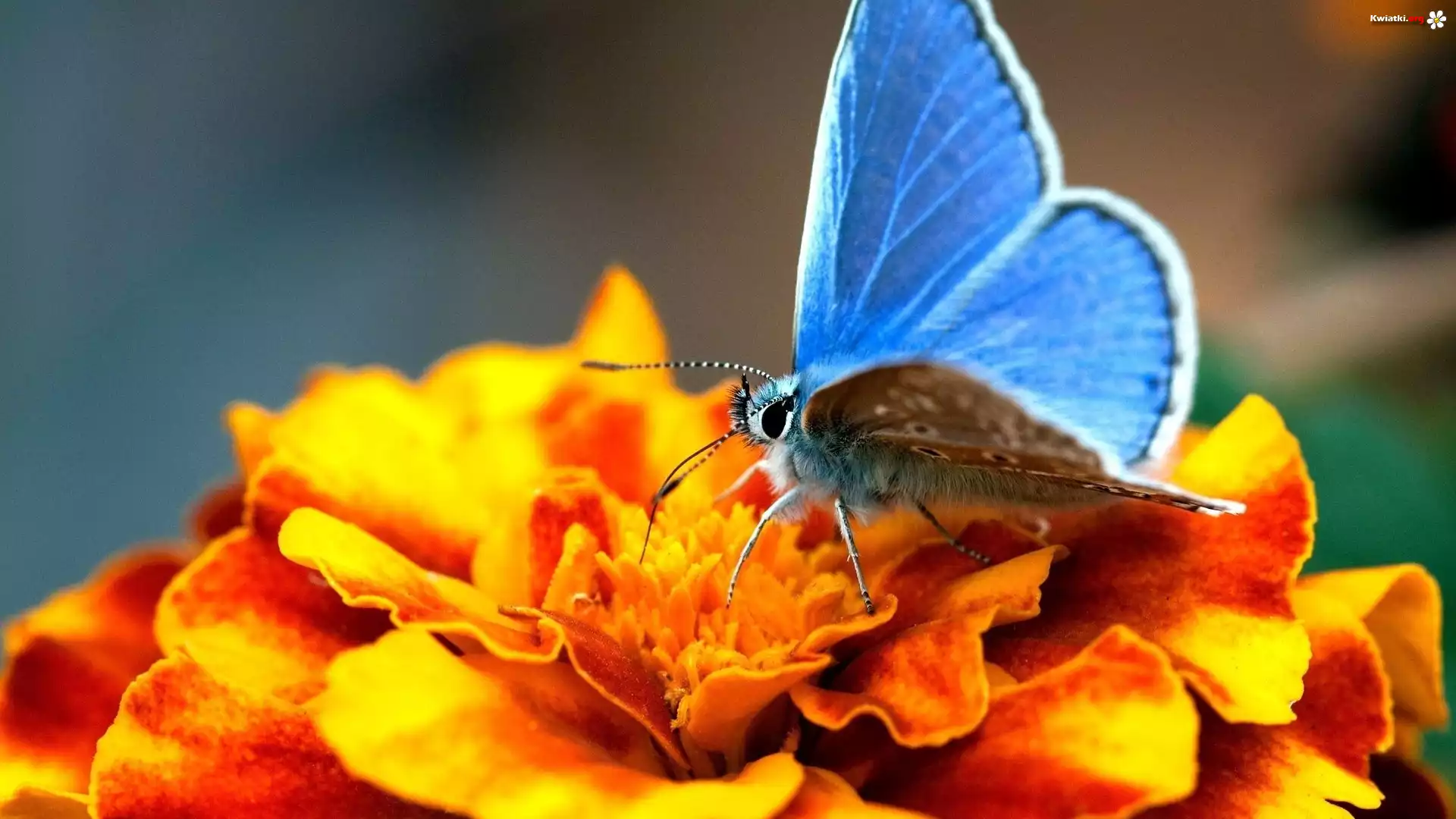 Kwiat Niebieski, Motyl, Modraszek ikar, Kwiat, Cynia