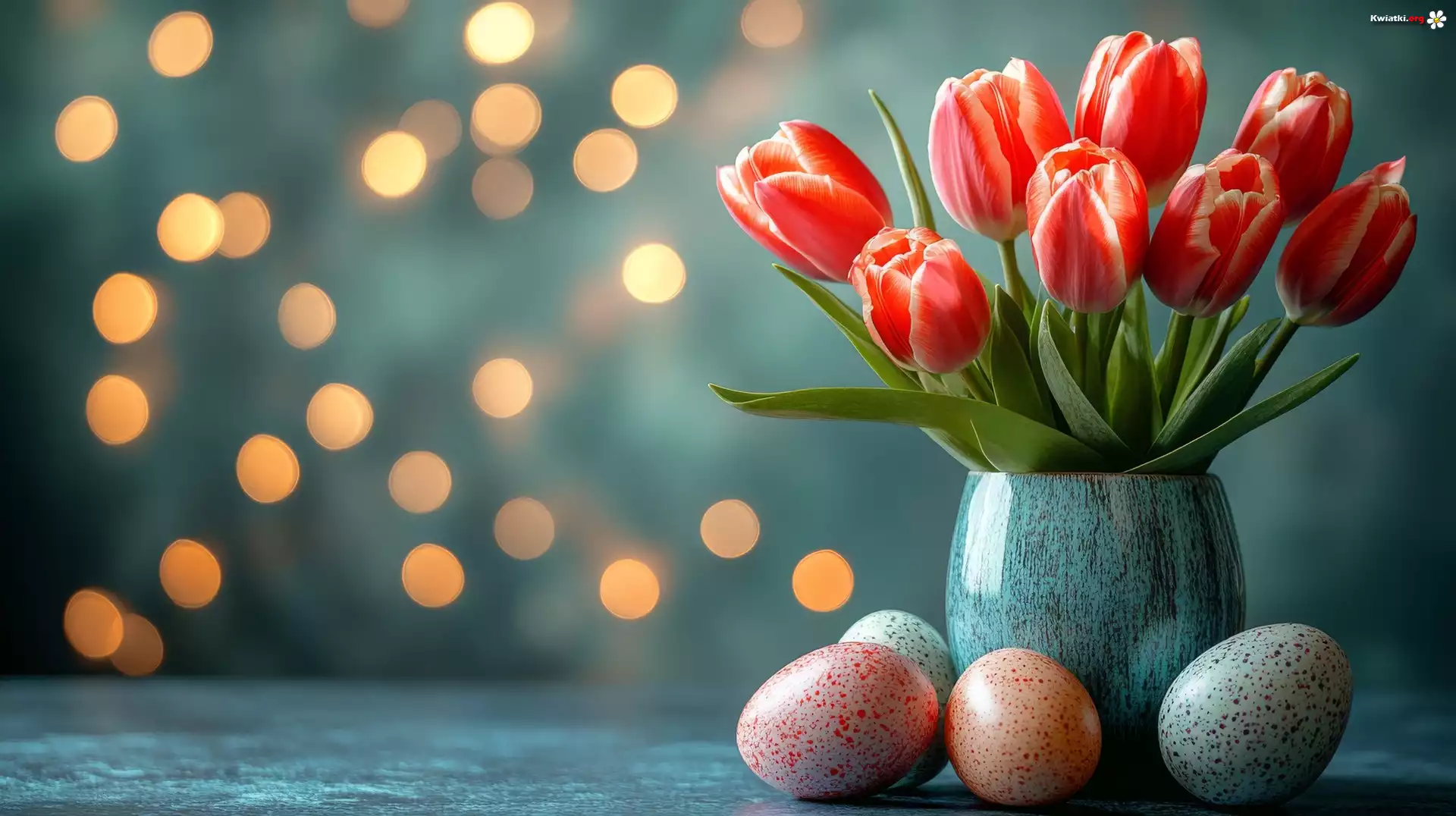 Tulipany, Niebieski, Wazon, Kolorowe, Pisanki - Zdjęcia