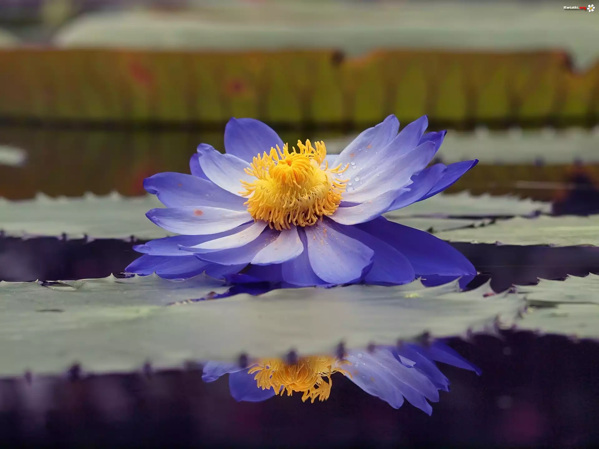 Niebieski, Kwiat, Woda, Odbicie, Lilia wodna - Zdjęcia