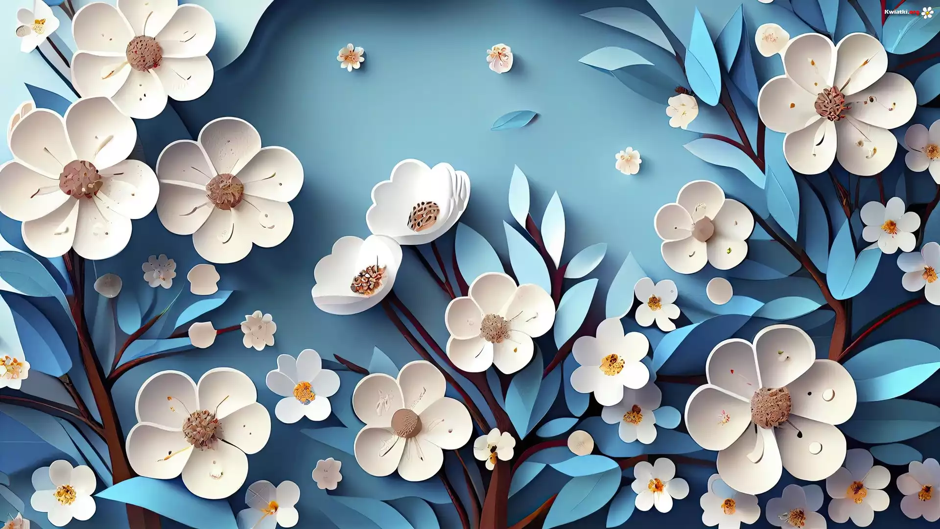 Białe, Papierowe, Kwiaty, Niebieskie, Liście, Grafika - Zdjęcia