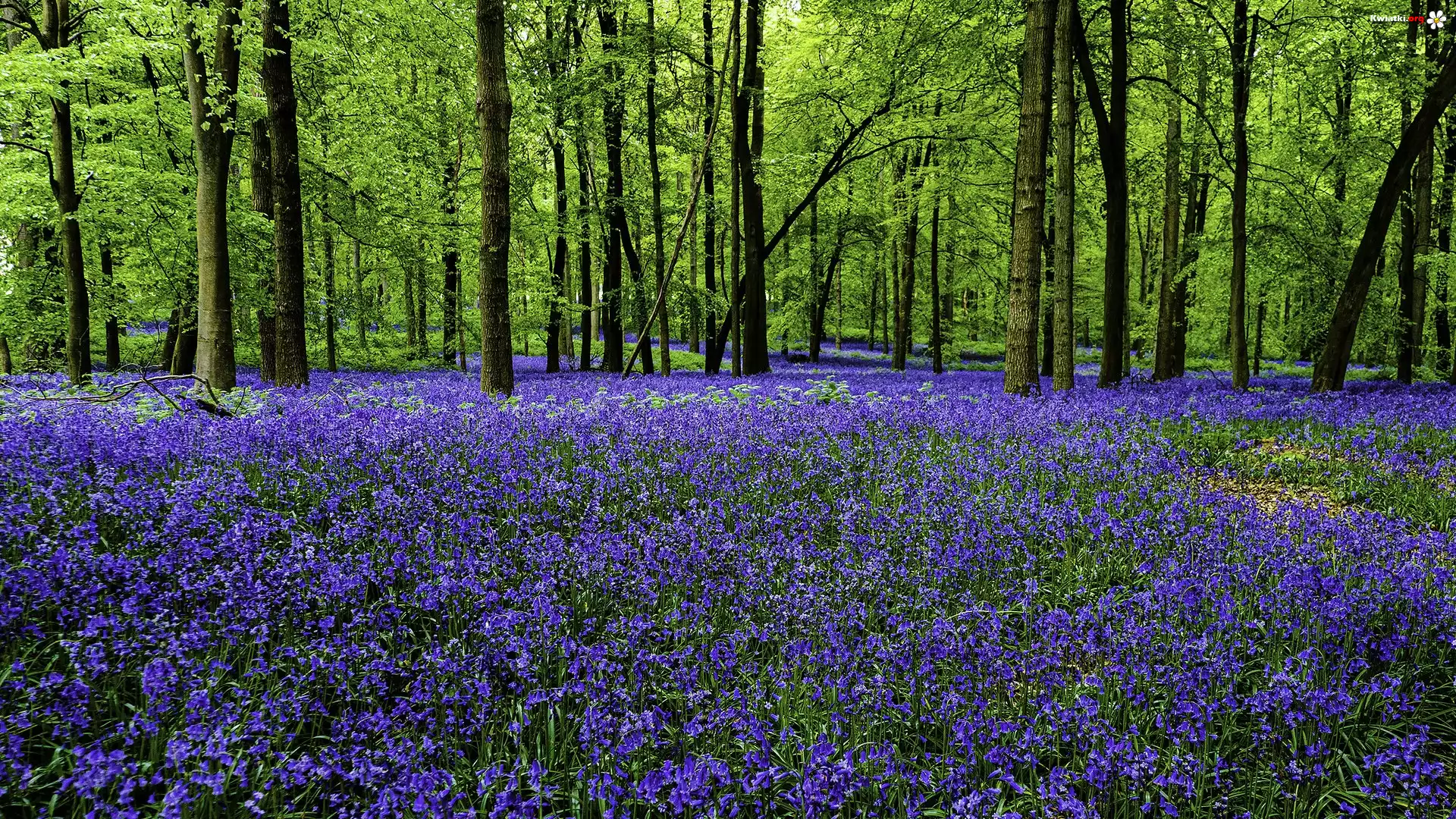 Wiosna, Las, Drzewa, Niebieskie, Kwiaty, Hiacyntowce - Zdjęcia
