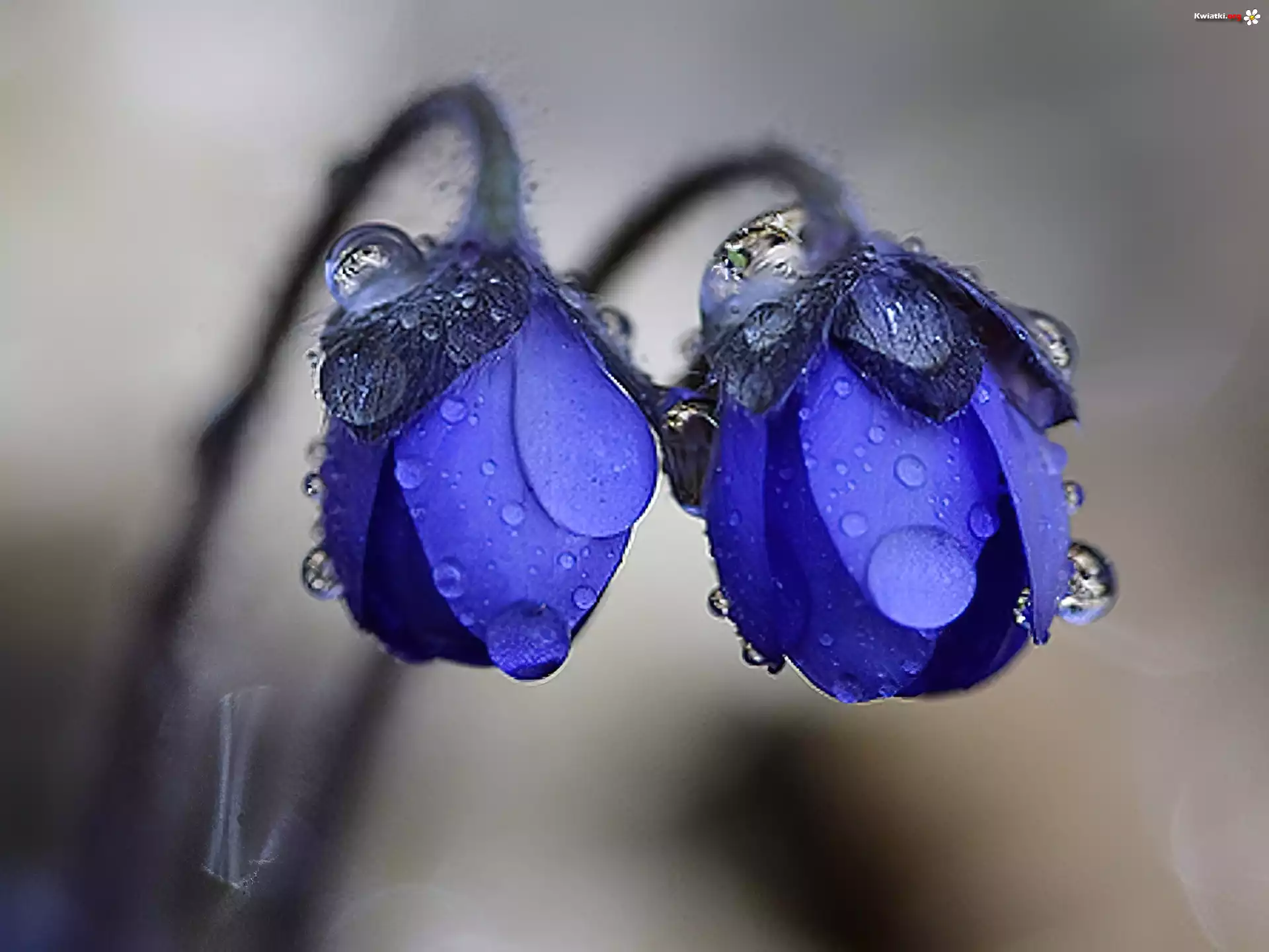 Kwiat Niebieskie, Kwiaty, Krople, Rosy