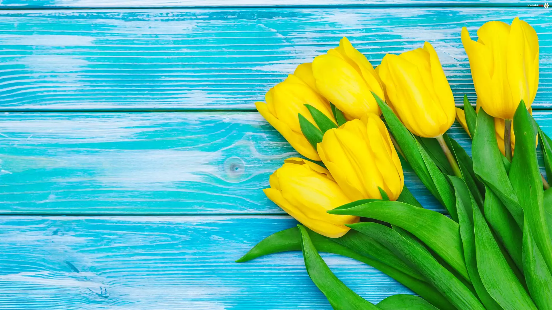 Żółte, Kwiaty, Tulipany, Niebieskie, Deski - Zdjęcia