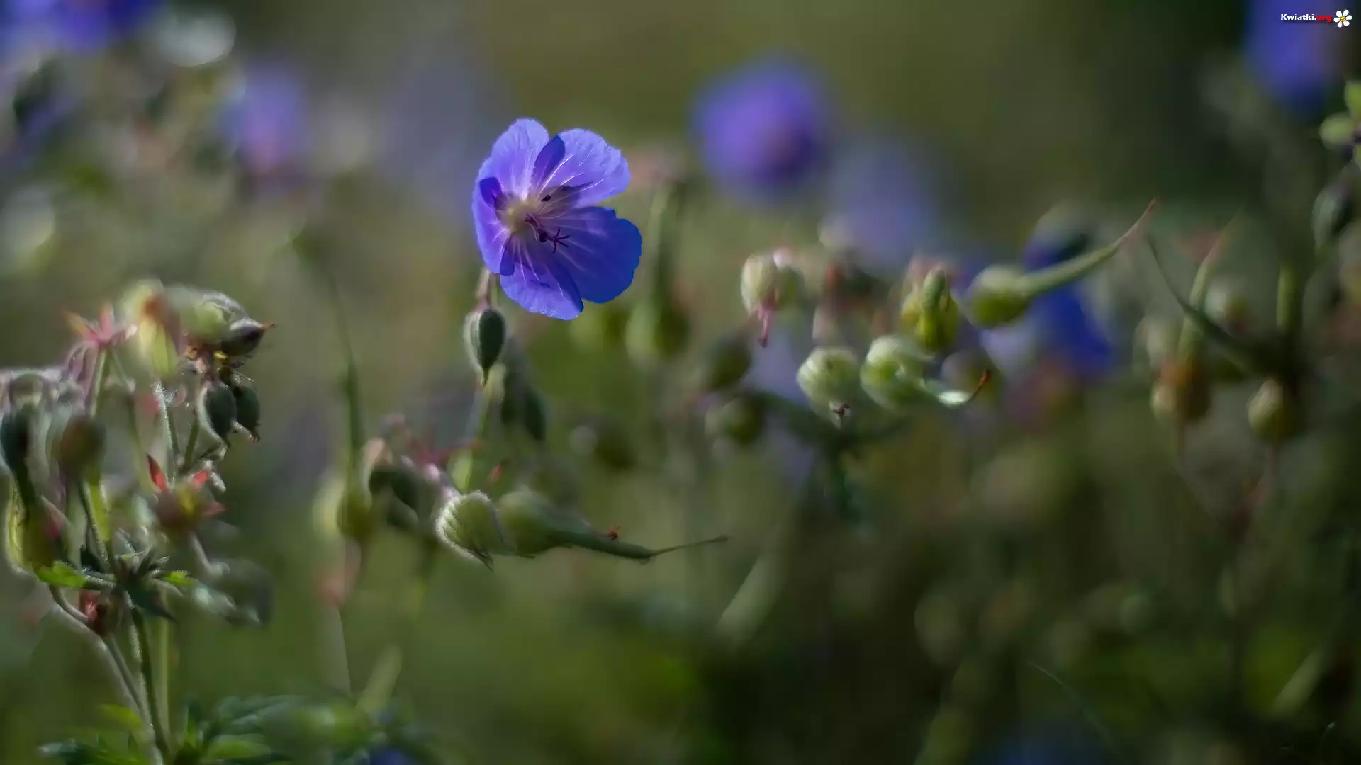 Niebieskie, Kwiaty, Pąki, Bodziszek - Zdjęcia