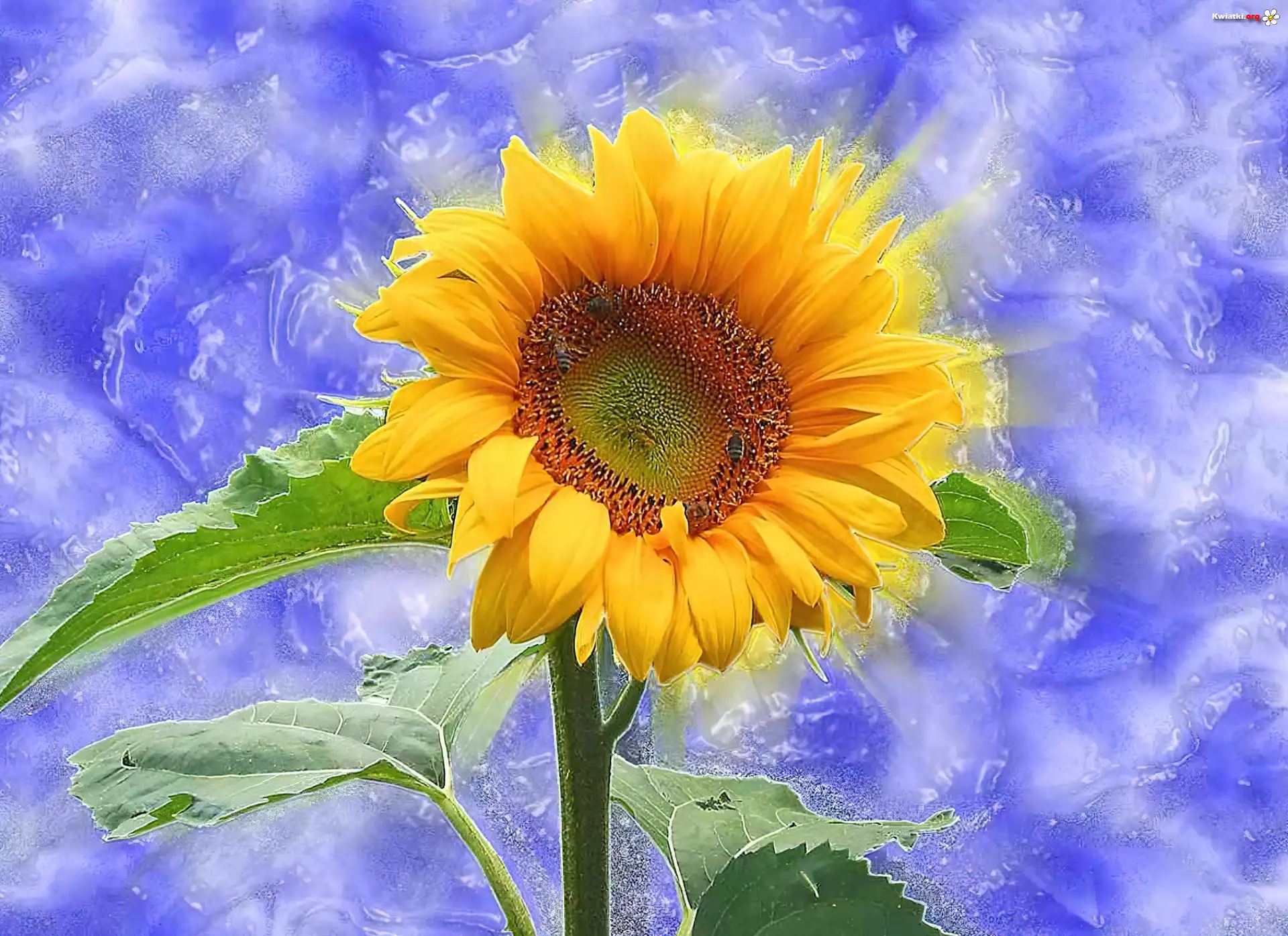 Słonecznik, Niebieskie, Tło - Zdjęcia