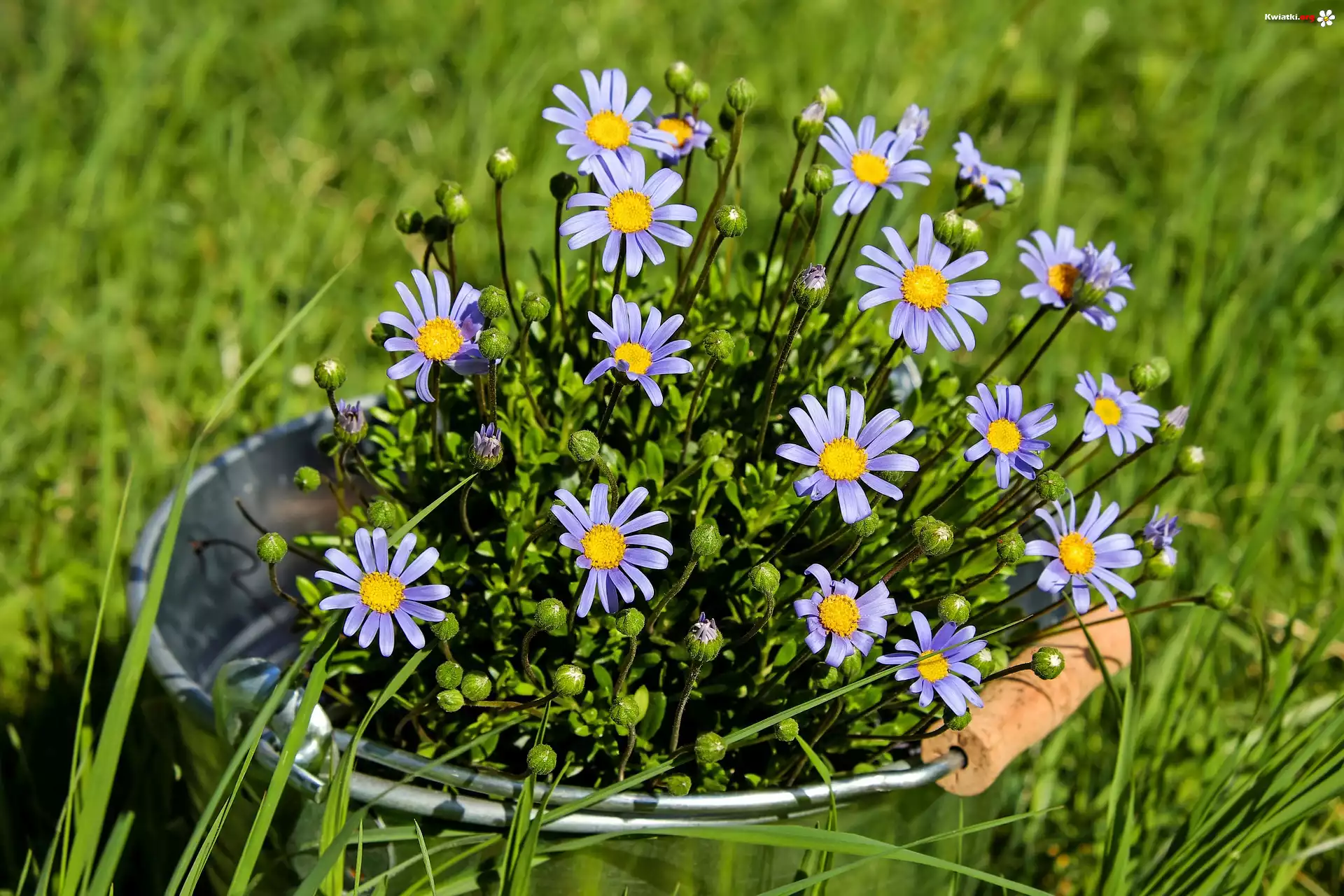 Kwiat Łąka, Trawa, Wiadro, Niebieskie, Kwiaty