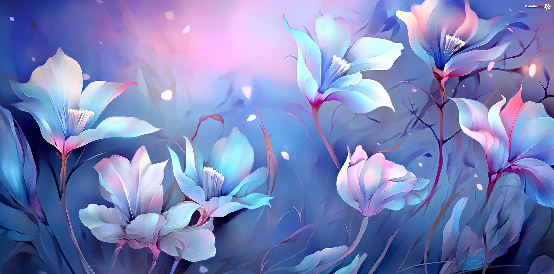 Kwiaty, Niebiesko-różowe, Tło, Grafika - Zdjęcia
