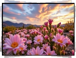 Kwiaty, Kaktusy, Pustynia, Niebo, Grafika AI - Zdjęcia