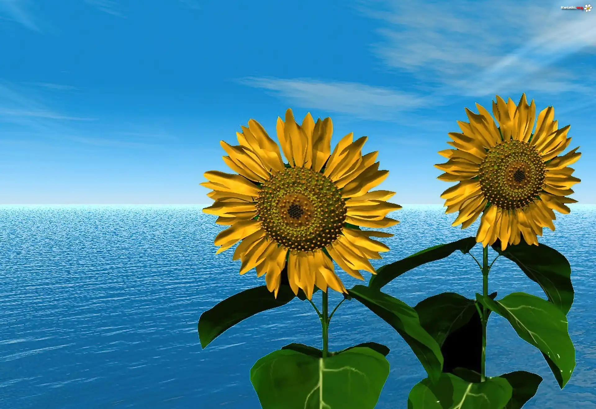 Kwiat Niebo, Morze, Słoneczniki, Grafika, Komputerowa