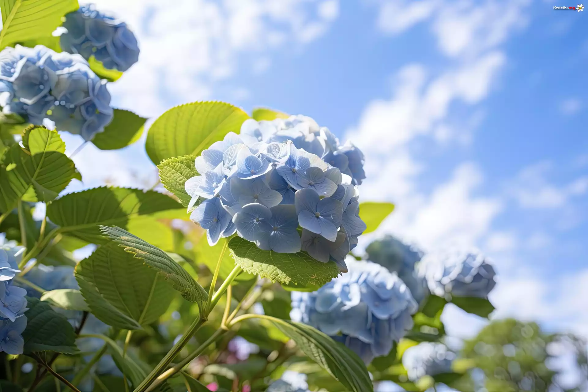 Hortensje, Niebieskie, Kwiaty, Niebo - Zdjęcia