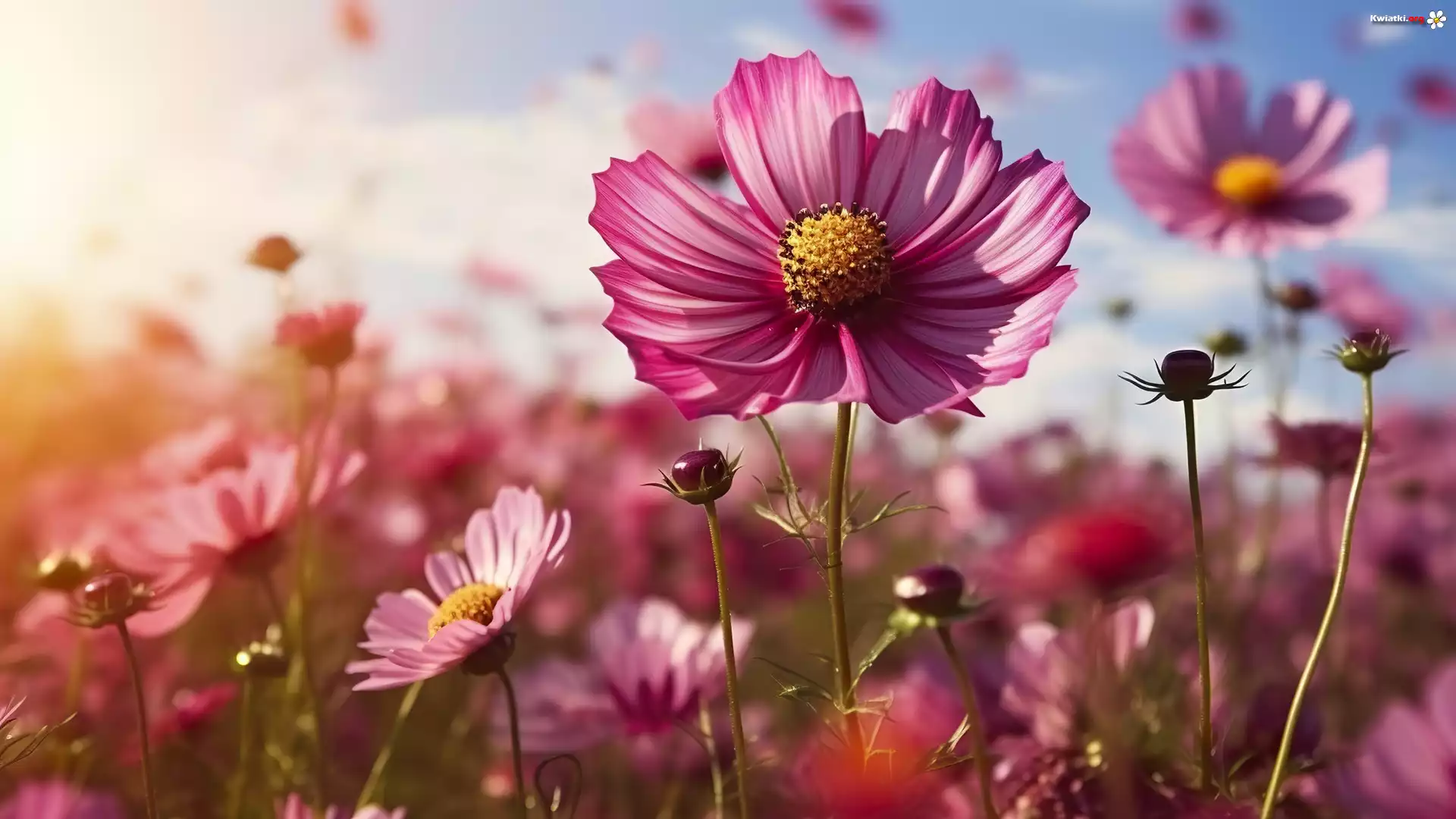 Kwiaty, Różowa, Kosmea, Niebo - Zdjęcia
