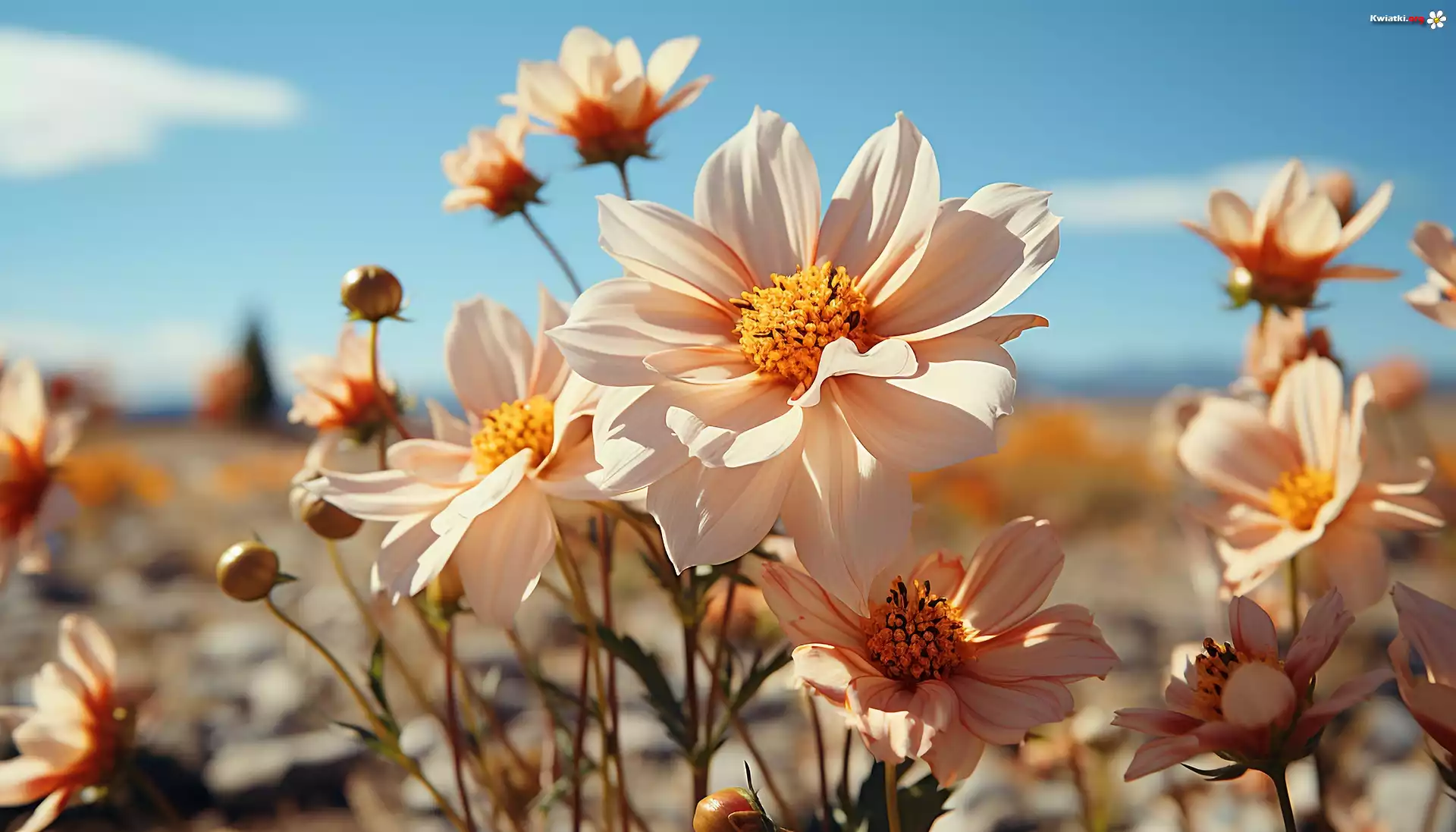 Kwiaty, Biały, Kosmos, Niebo - Zdjęcia