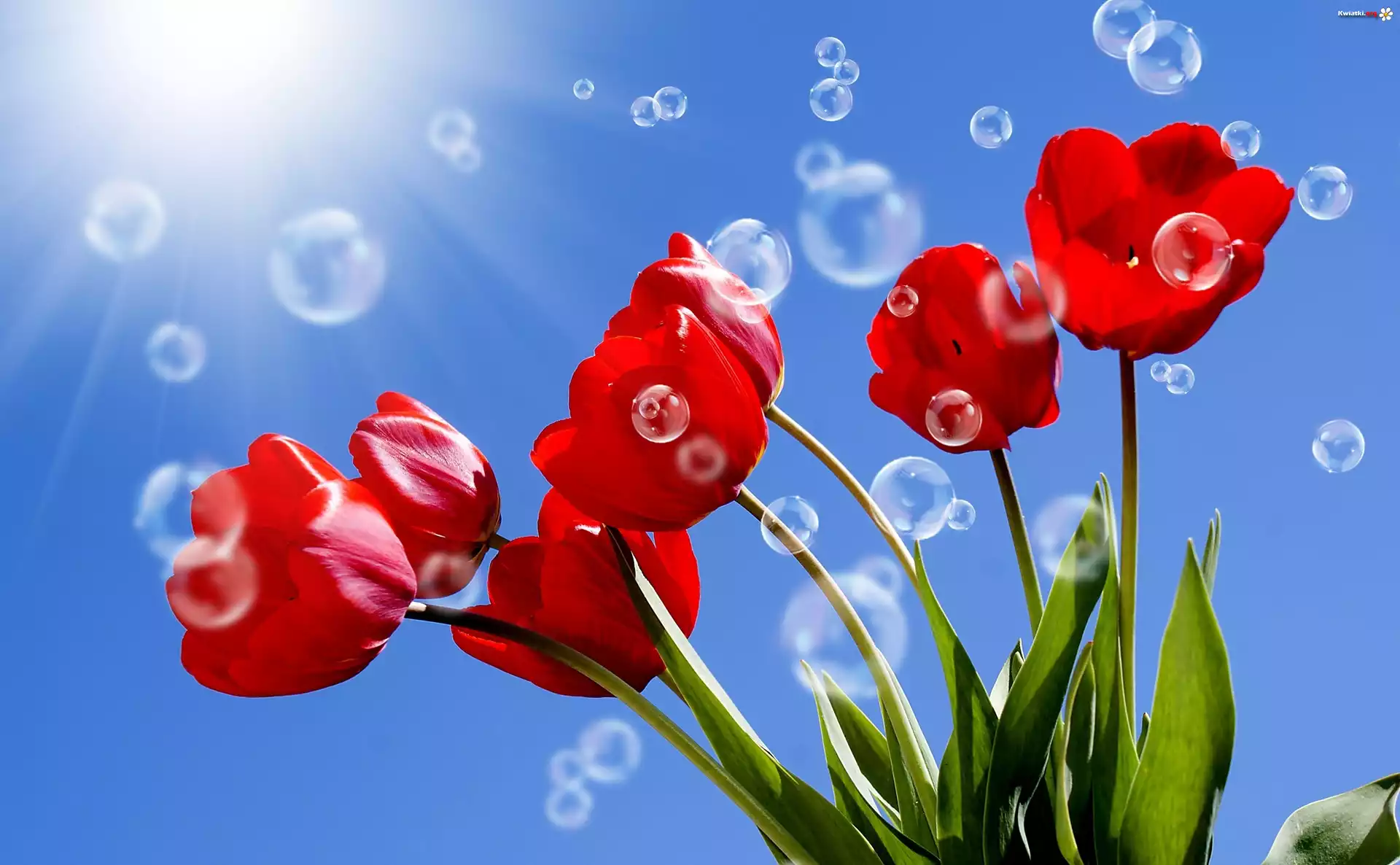 Kwiat Niebo, Słońce, Czerwone, Tulipany, Bańki