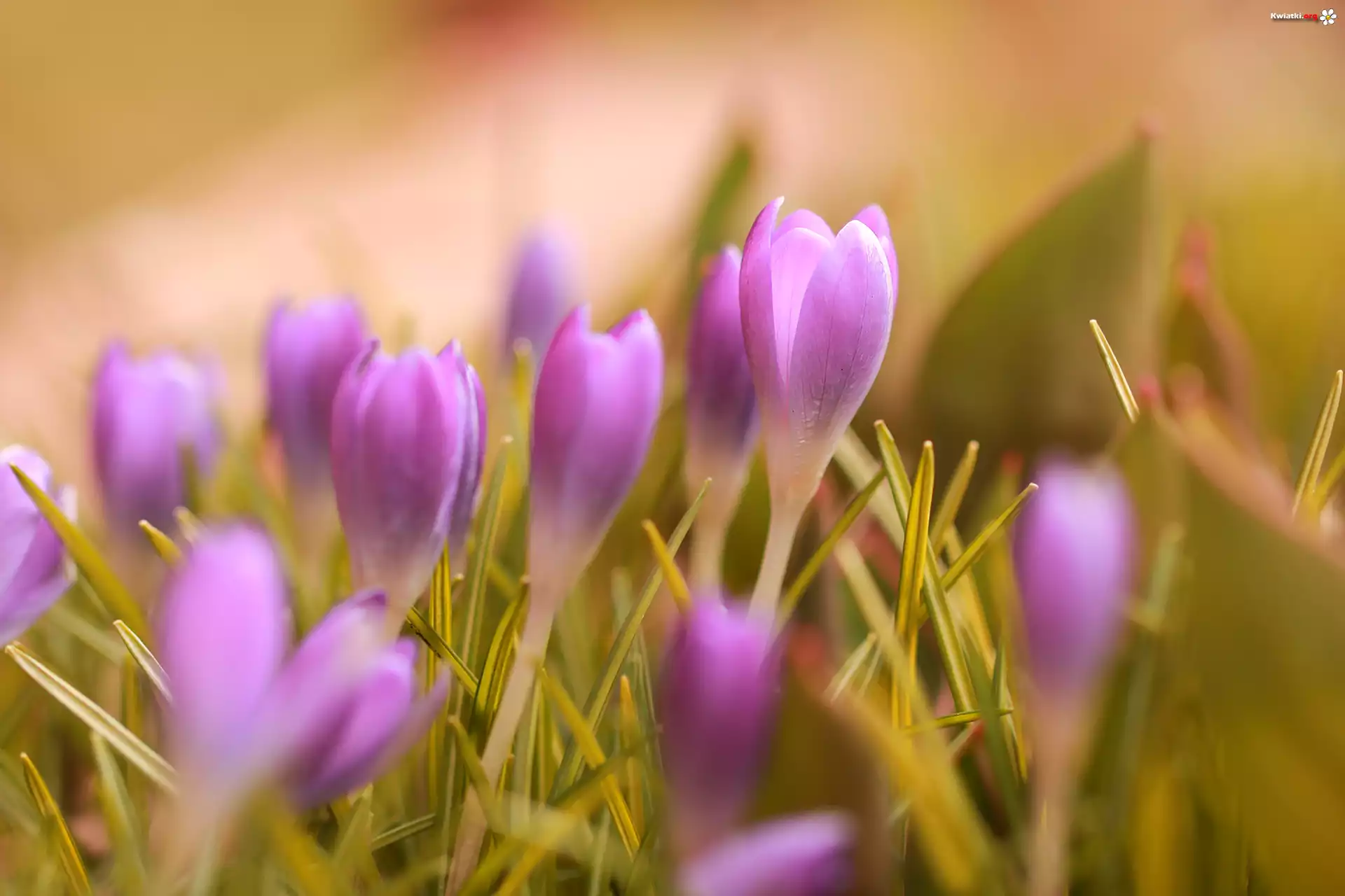 Nierozwinięte, Kwiaty, Fioletowe, Krokusy - Zdjęcia
