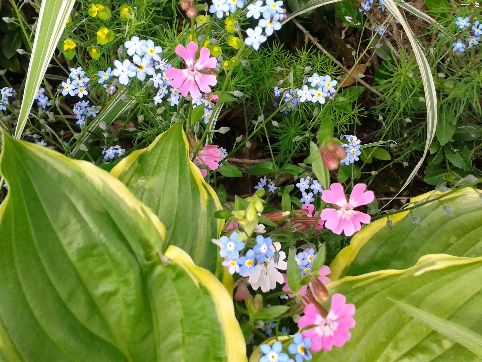 Niezapominajka, Niebieska, Różowe Kwiatki, Zielone Liście - Zdjęcia
