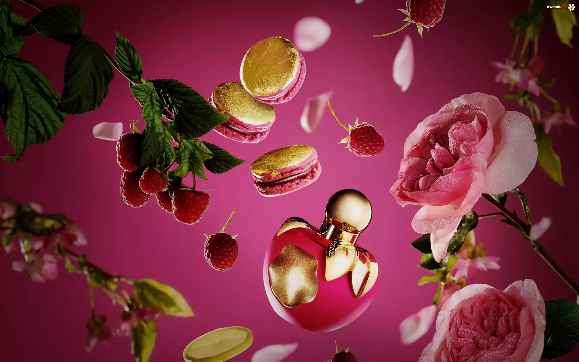 Perfumy, Nina Ricci, Flakon, Kwiaty, Owoce, Ciastka, Róża - Zdjęcia