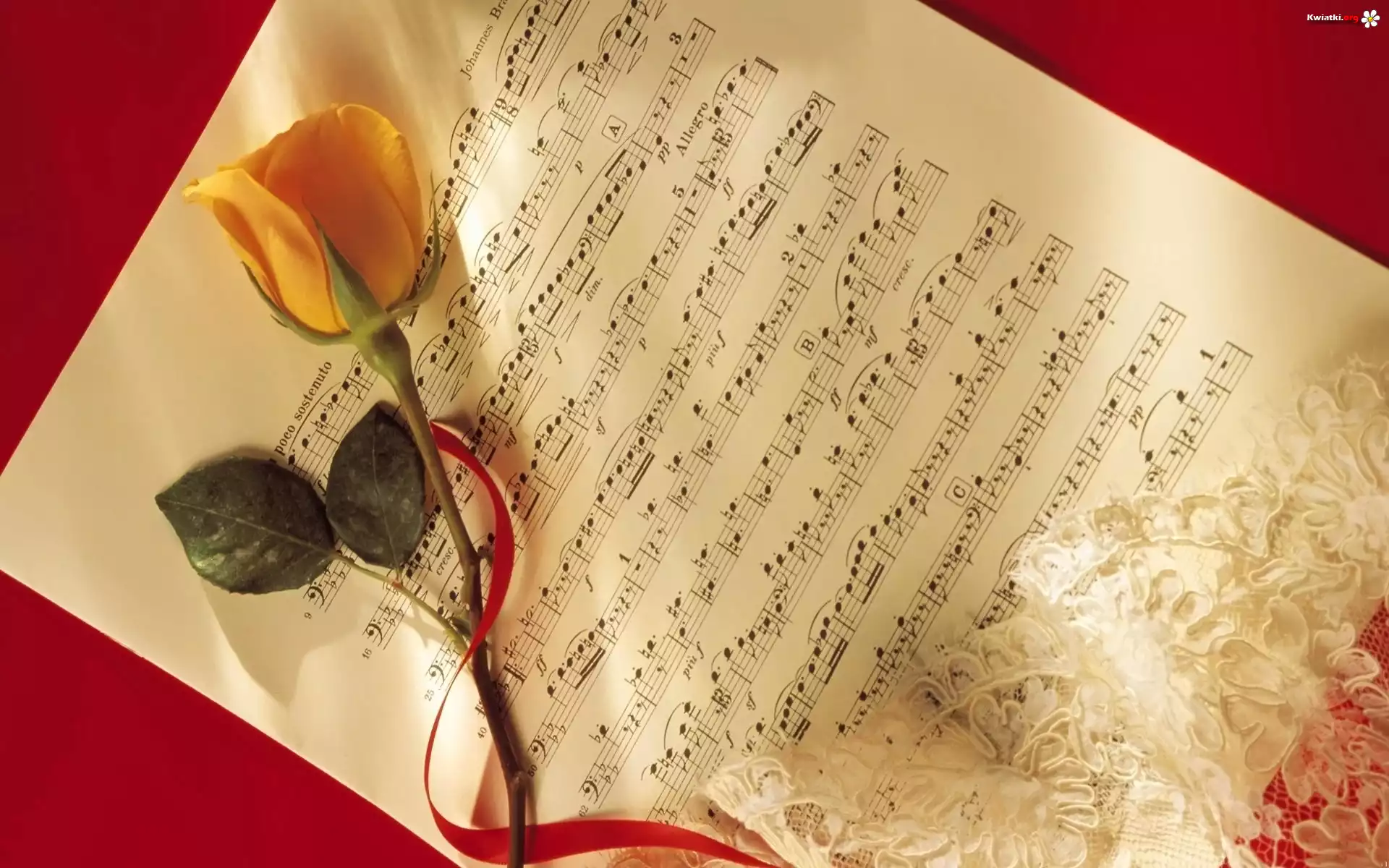Żółta, Róża, Nuty, Koronka - Zdjęcia
