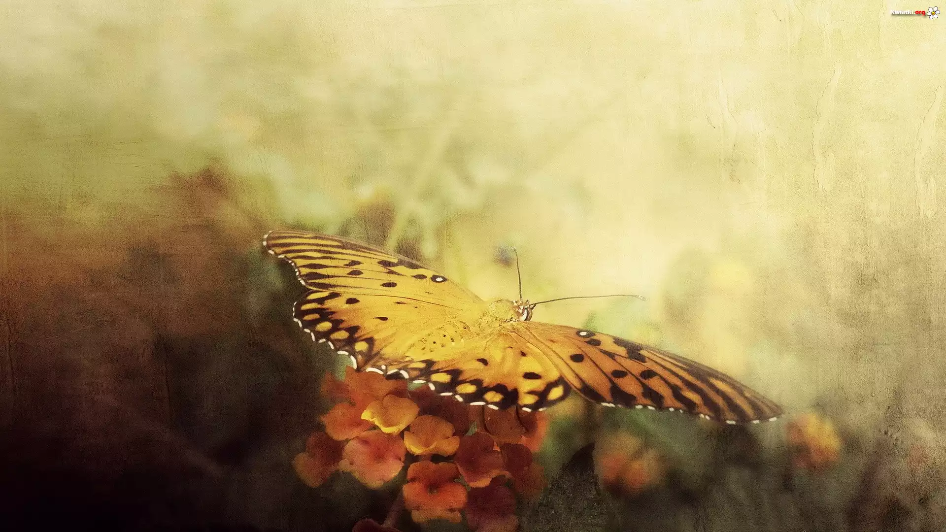 Kwiat Obraz, Sitodruk, Motyl, Kwiaty