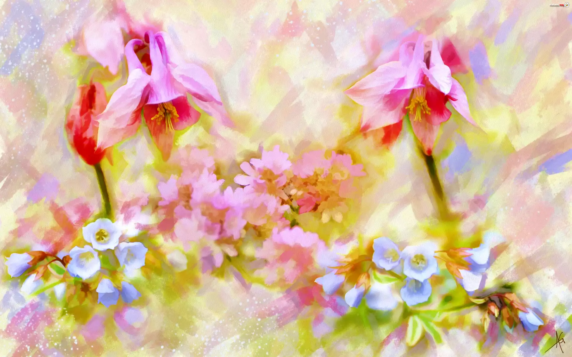 Obraz, Alberto Guillen, Akwarela, Orlik, Kwiaty - Zdjęcia