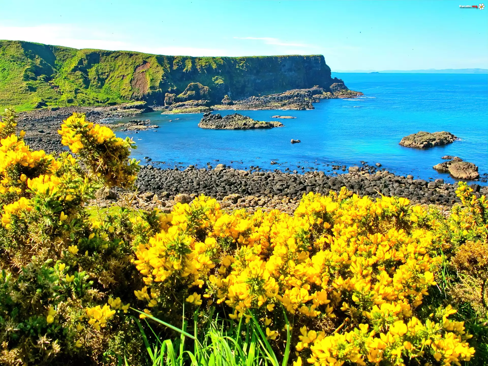 Żółte, Kwiaty, Ocean, Klif - Zdjęcia