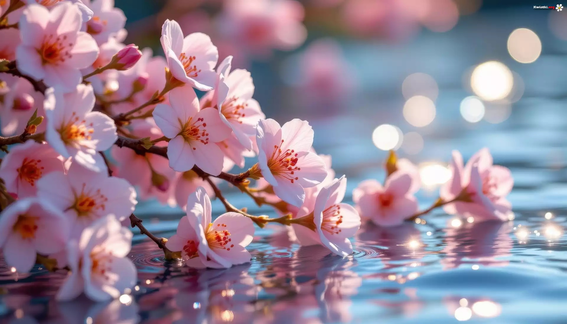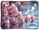 Różowe, Kwiaty, Gałązki, Odbicie - Zdjęcia