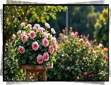 Różowe, Róże, Bukiet, Ogród, Grafika AI - Zdjęcia