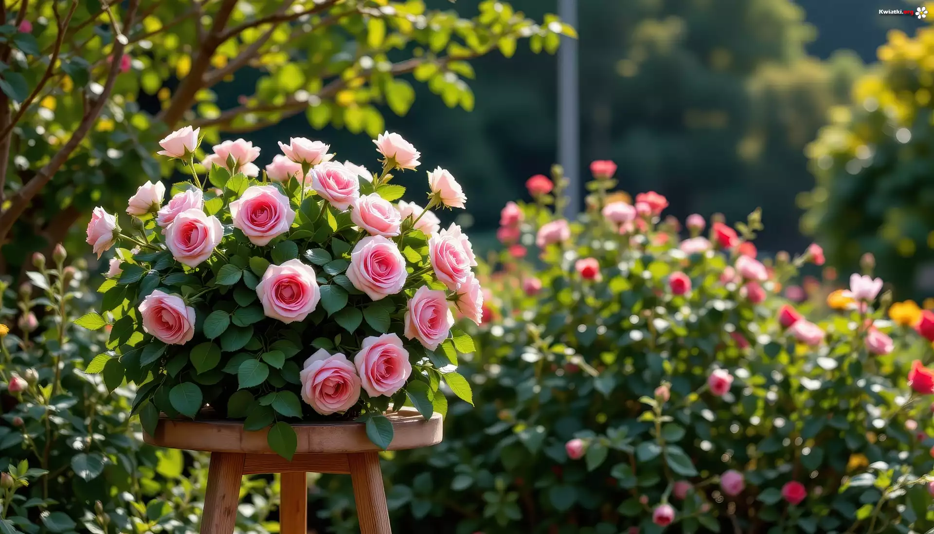 Kwiat Różowe, Róże, Bukiet, Ogród, Grafika AI