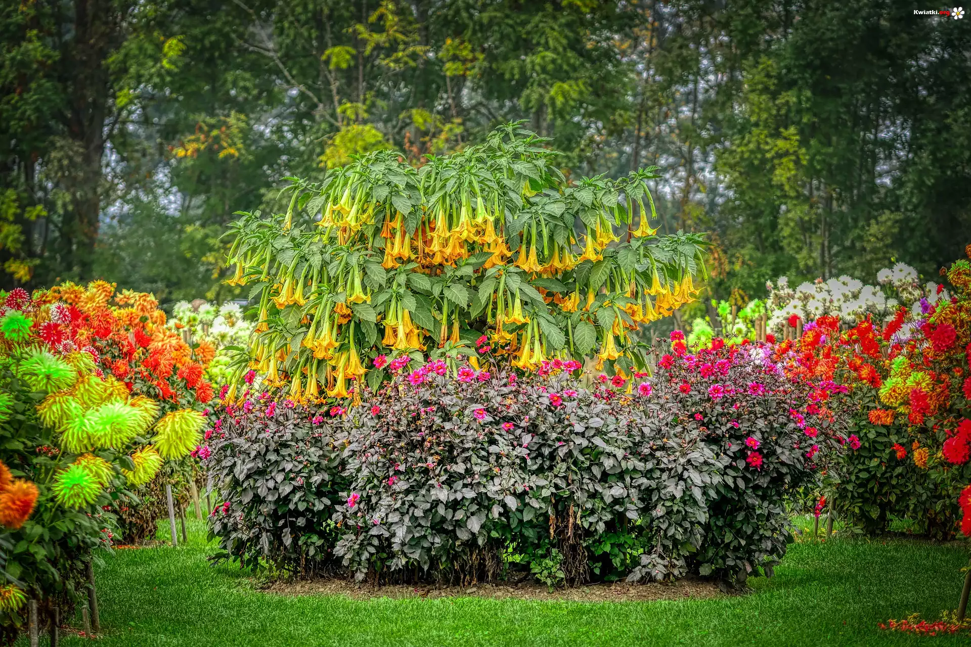 Kwiat Ogród, Kwiaty, Brugmansja, Bieluń, Dalie